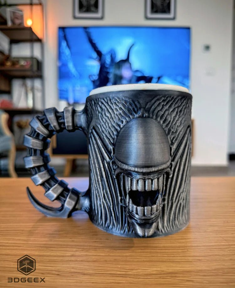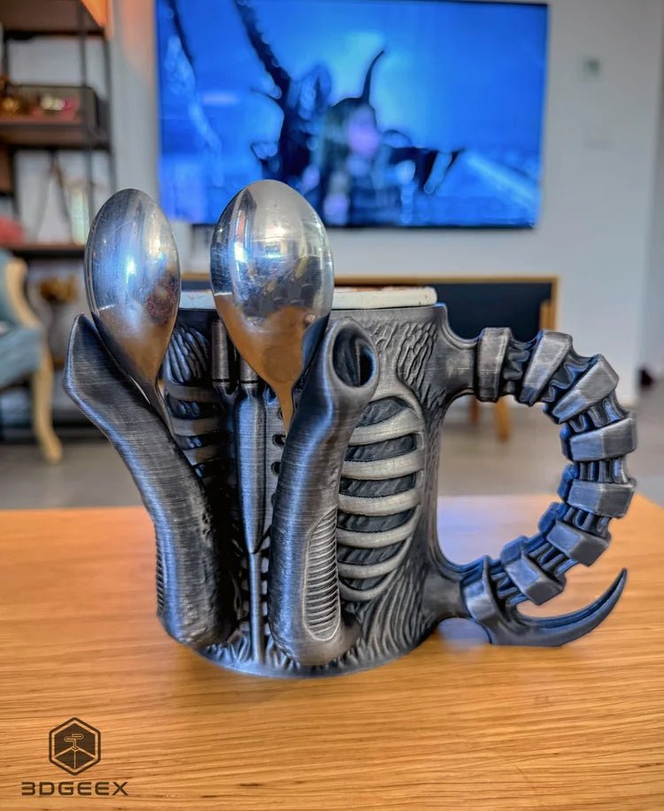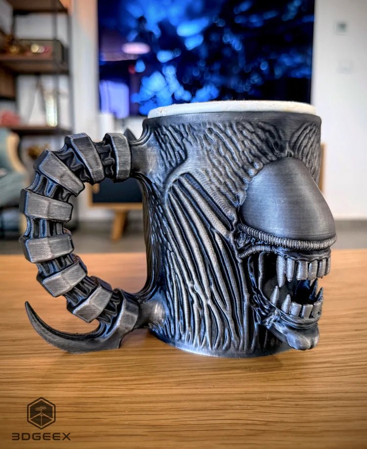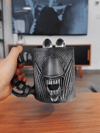 Designed with biomechanical textures, sharp teeth, and a tail-inspired handle, this pint holder is a true collectible for fans of classic alien horror. Each piece is available in left-handed or right-handed handle versions, making it practical as well as striking.