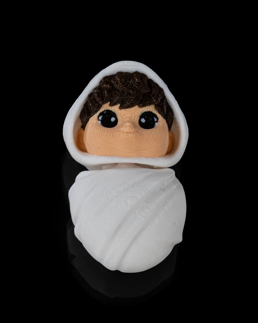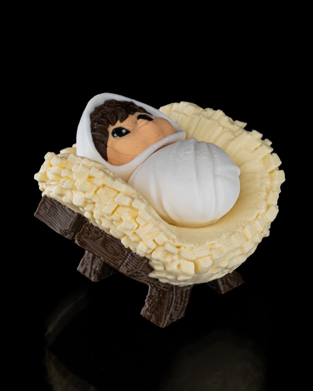 Celebrate the true meaning of Christmas with this adorable Baby Jesus Keychain and Mini Nativity Scene, designed and 3D printed by Fusion Layer 3D. This beautifully detailed piece features Baby Jesus wrapped in a white swaddle with brown hair and big, expressive eyes, bringing warmth and joy to your holiday season.