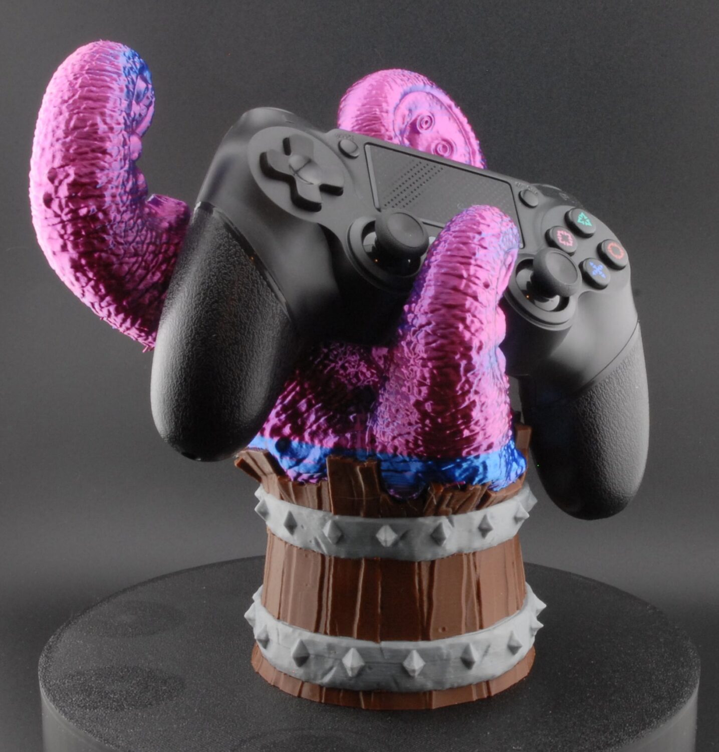 Conquer clutter and display your gear in style with the Barrel Royale Tentacle Grip Controller Stand. Three sculpted octopus-inspired tentacles rise from a barrel-shaped base to securely cradle your controller — whether you’re prepping for battle royale or wrapping up a long campaign.
