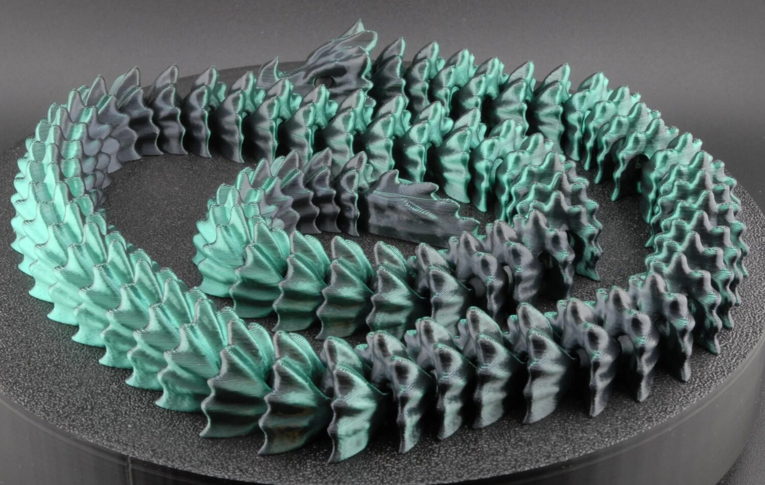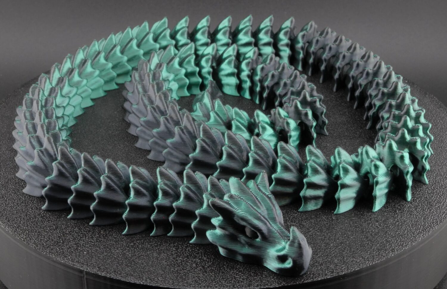 Printed in a smoky gradient of black and teal PLA, it evokes the feel of buried relics or resurrected beasts from deep within the earth. Perfect for gothic fantasy collectors or anyone who loves dragons with an edge.