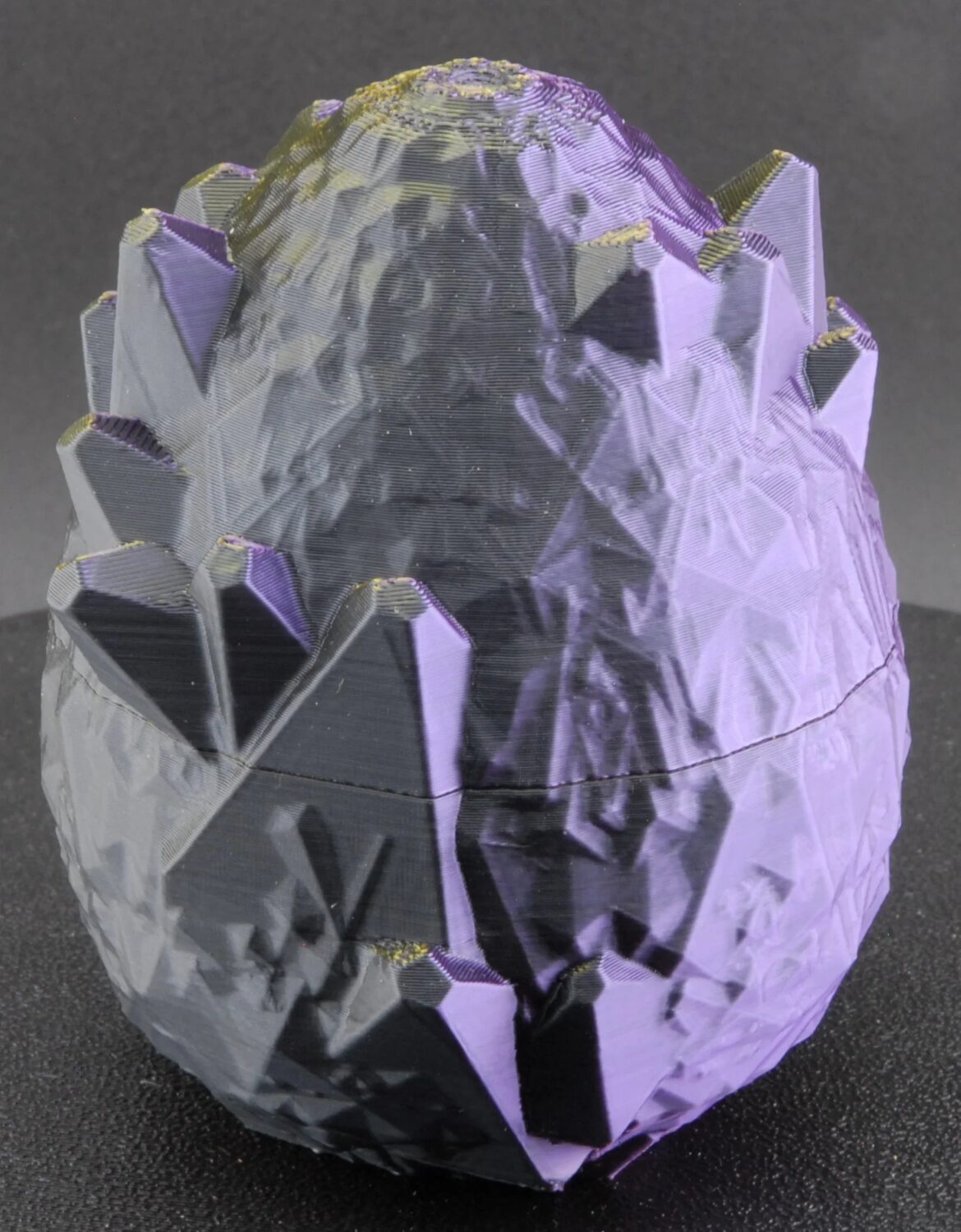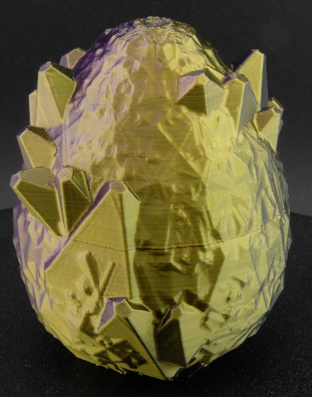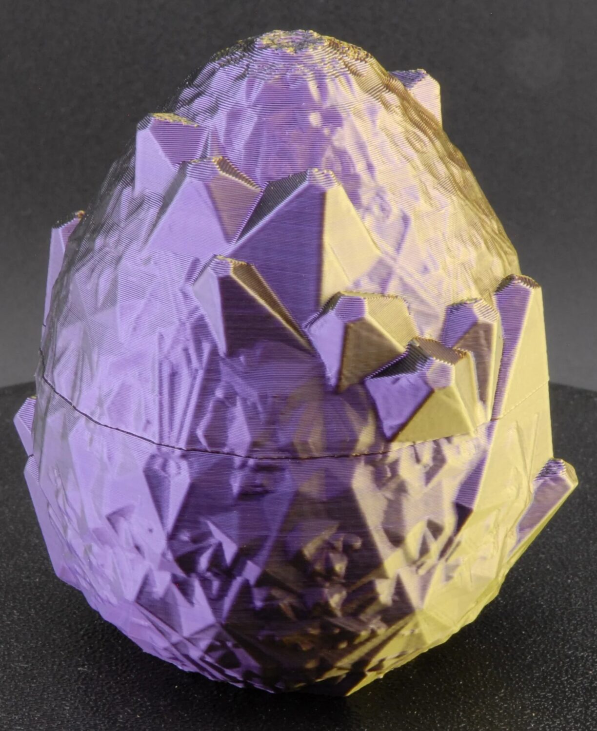 Printed in shimmering PLA with purple and gold tones