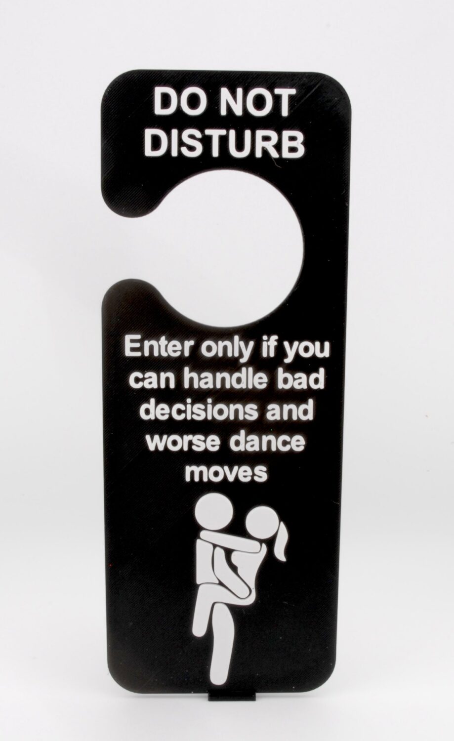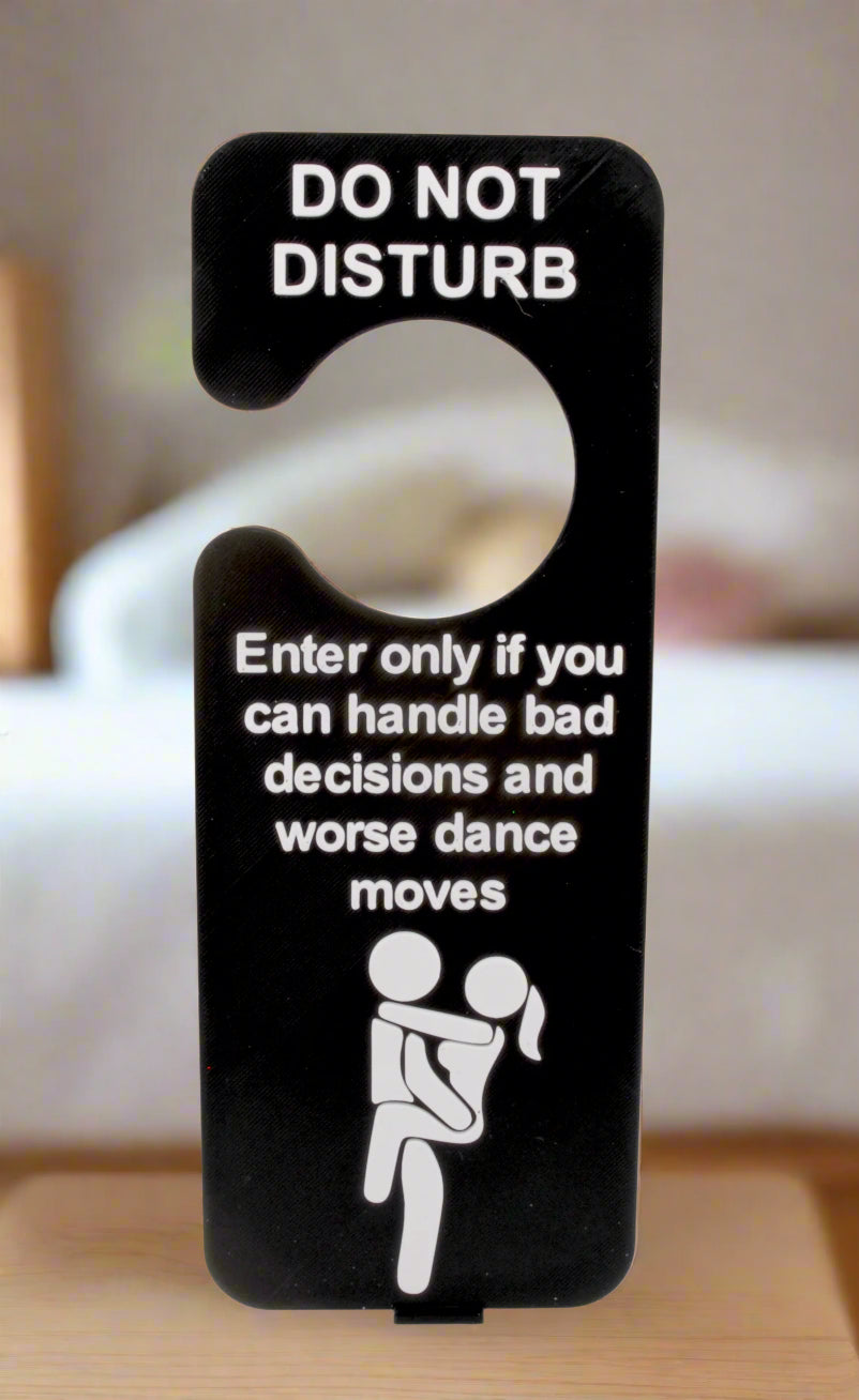 Introduce a touch of humor to your space with this 3D printed door hanger. Featuring a witty “Bad Decisions & Dance Moves” design, it’s perfect for adults who appreciate party humor. Ideal as a fun gift or personal decoration, this sign effectively communicates your need for privacy while adding a playful vibe to any room.