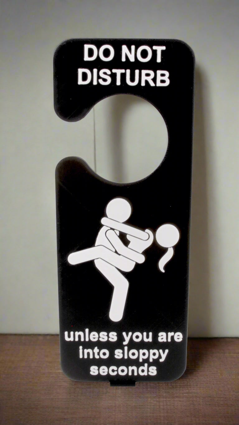 Crafted from durable PLA plastic and designed to fit standard doorknobs, this novelty sign makes a fantastic gag gift, bedroom décor piece, or adult party accessory.
