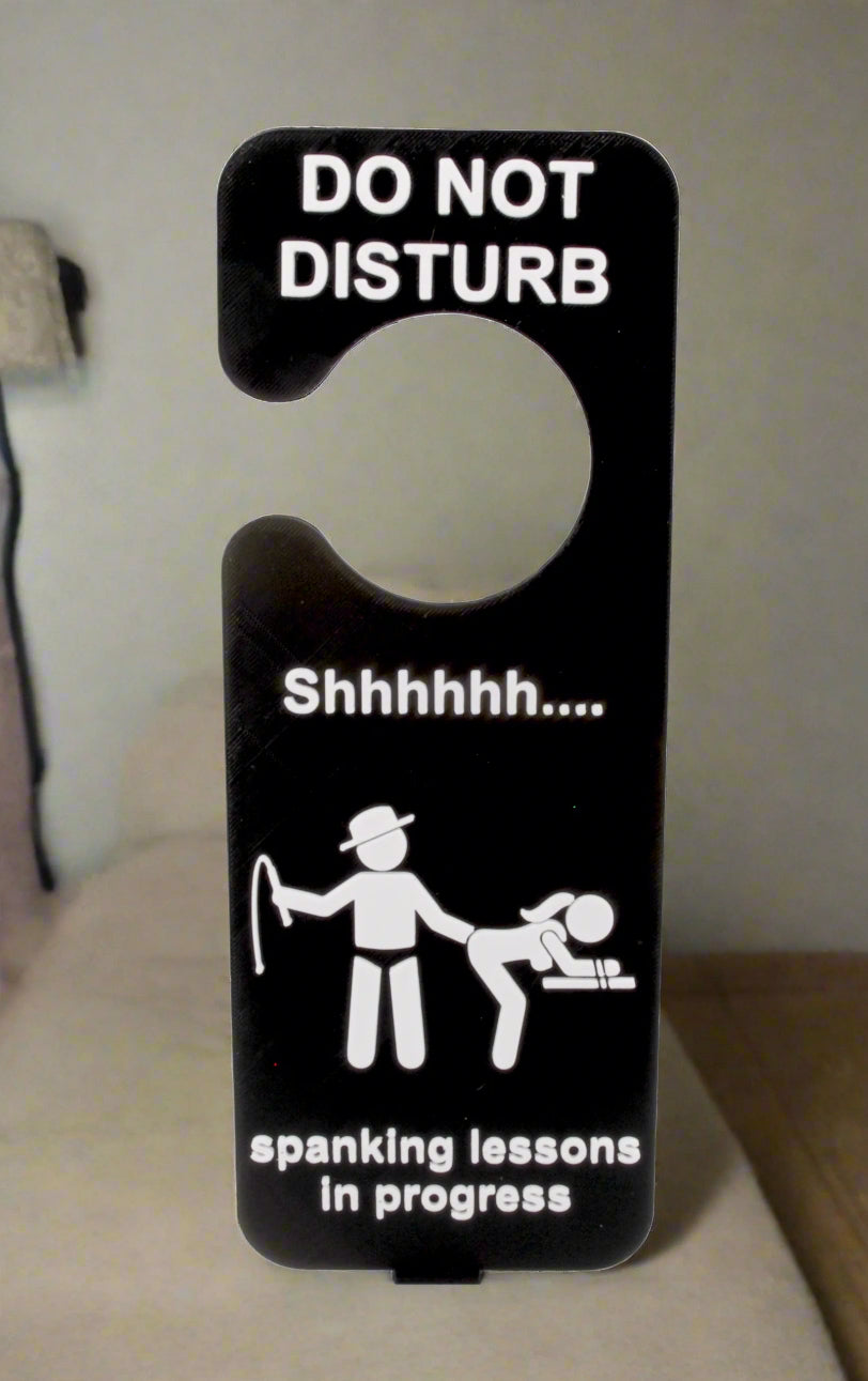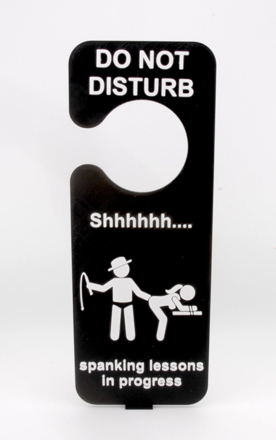 Introducing a cheeky door hanger designed for those who appreciate a playful twist on BDSM humor. This 3D printed sign serves as the perfect gag gift or spirited décor addition, ensuring guests know when not to disturb. A blend of naughtiness and wit makes it a standout for any unconventional space.