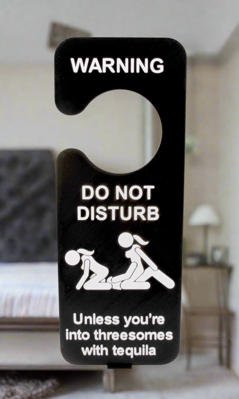 Spice up your door with a little tequila-fueled fun! This “Unless You’re Into Threesomes with Tequila” Do Not Disturb door hanger is the perfect mix of naughty humor and bold design. Whether it’s for a wild night in, a bachelor/bachelorette party, or just a hilarious gag gift, this risqué hanger gets the message across loud and clear.