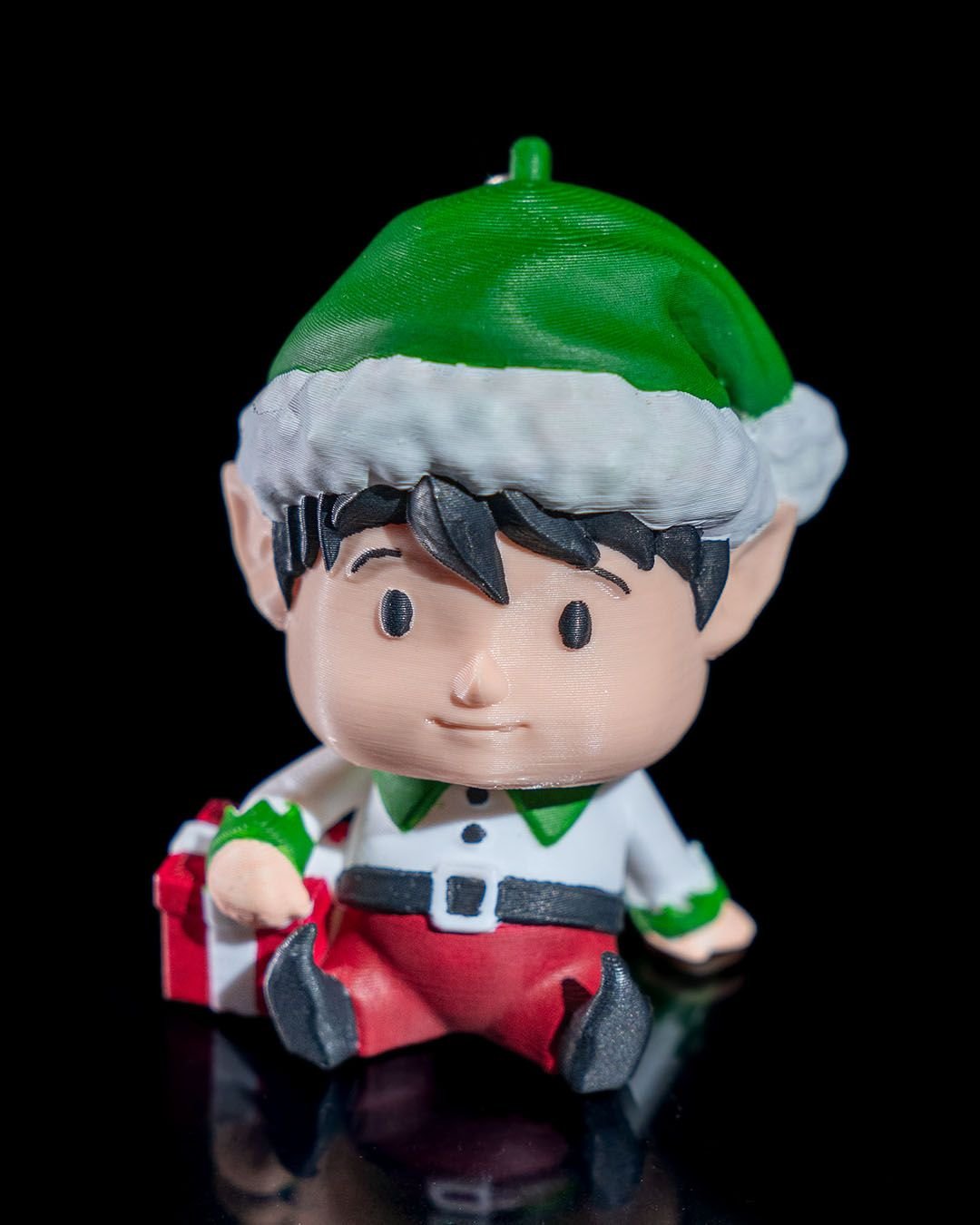 Each ornament is crafted in high-quality multi-color PLA, showing crisp details like the elf’s expressive eyes, detailed clothing, and gift accessory. Measuring approximately 8 cm (3.1 in) tall, it’s lightweight and durable, making it perfect for hanging on any tree branch or display.