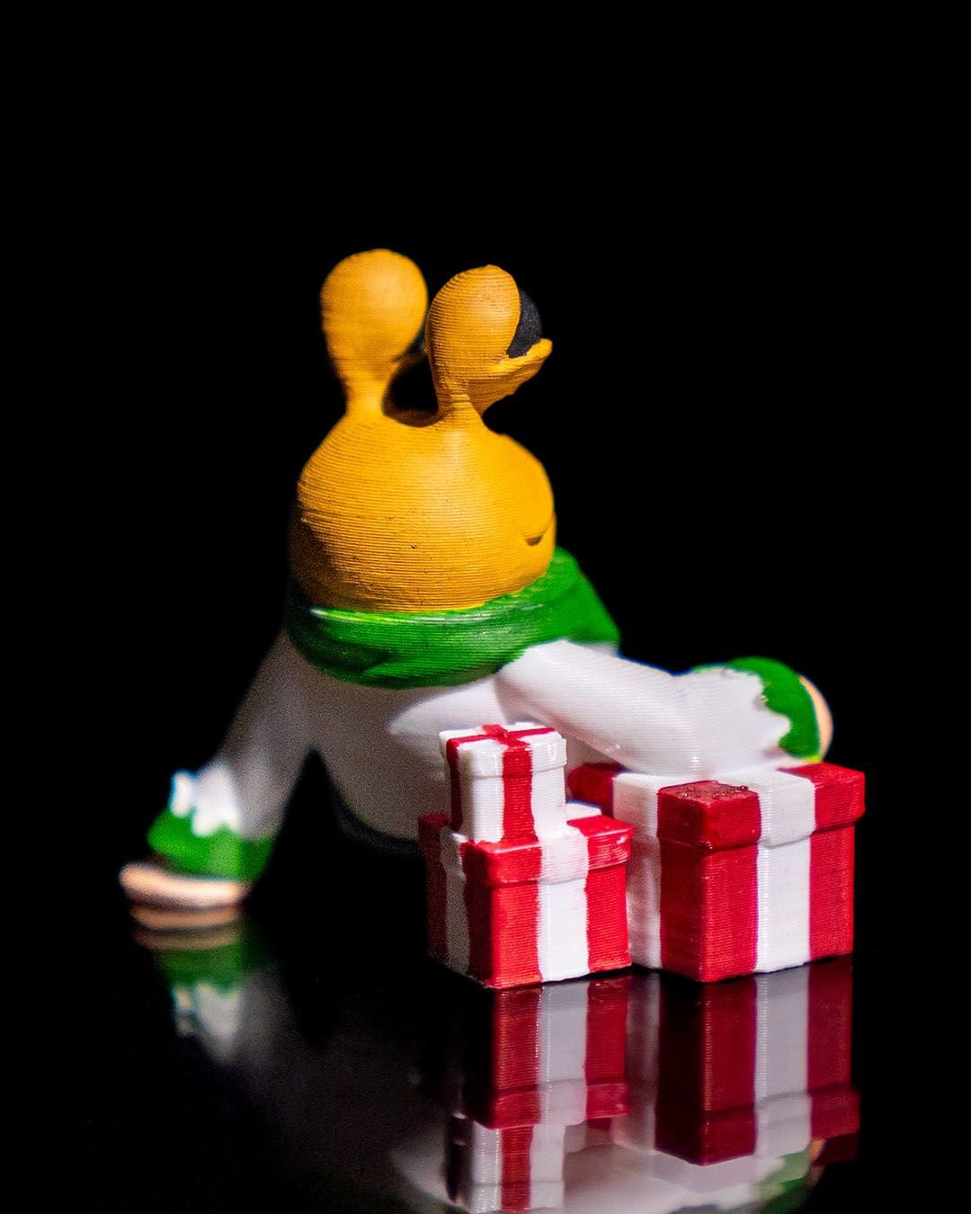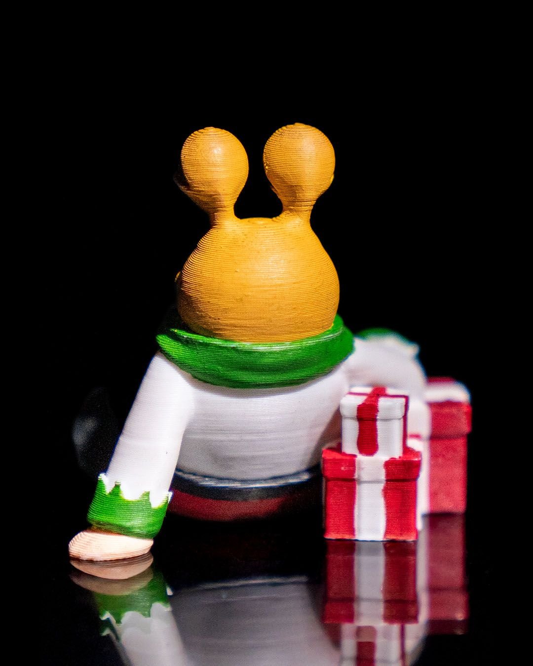 Bring some out-of-this-world cheer to your holiday season with the Extraterrestri Elf Ornament — a playful mix of Christmas spirit and cosmic charm! This 3D printed ornament features a cute elf in red pants and green hat, holding a gift box and ready to spread intergalactic joy across your Christmas tree.