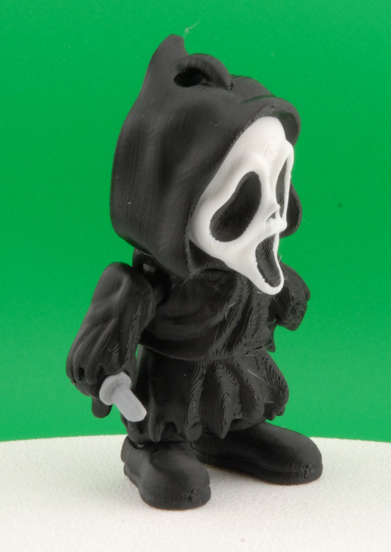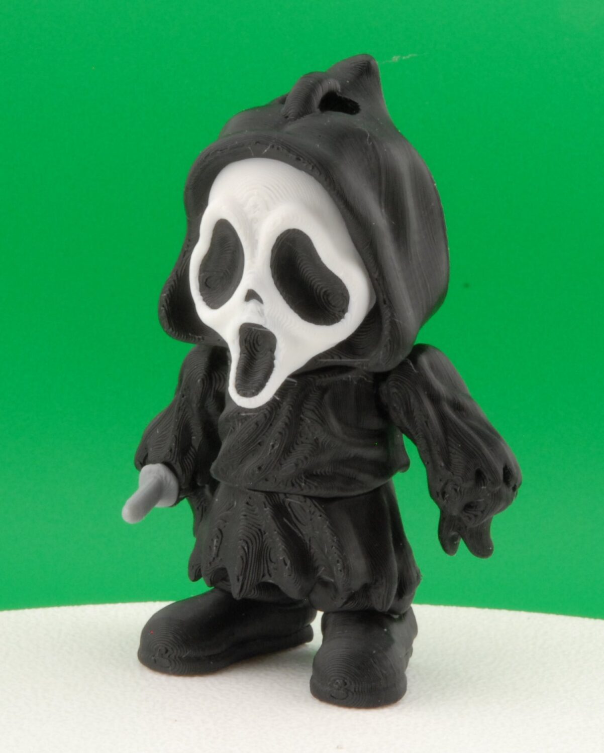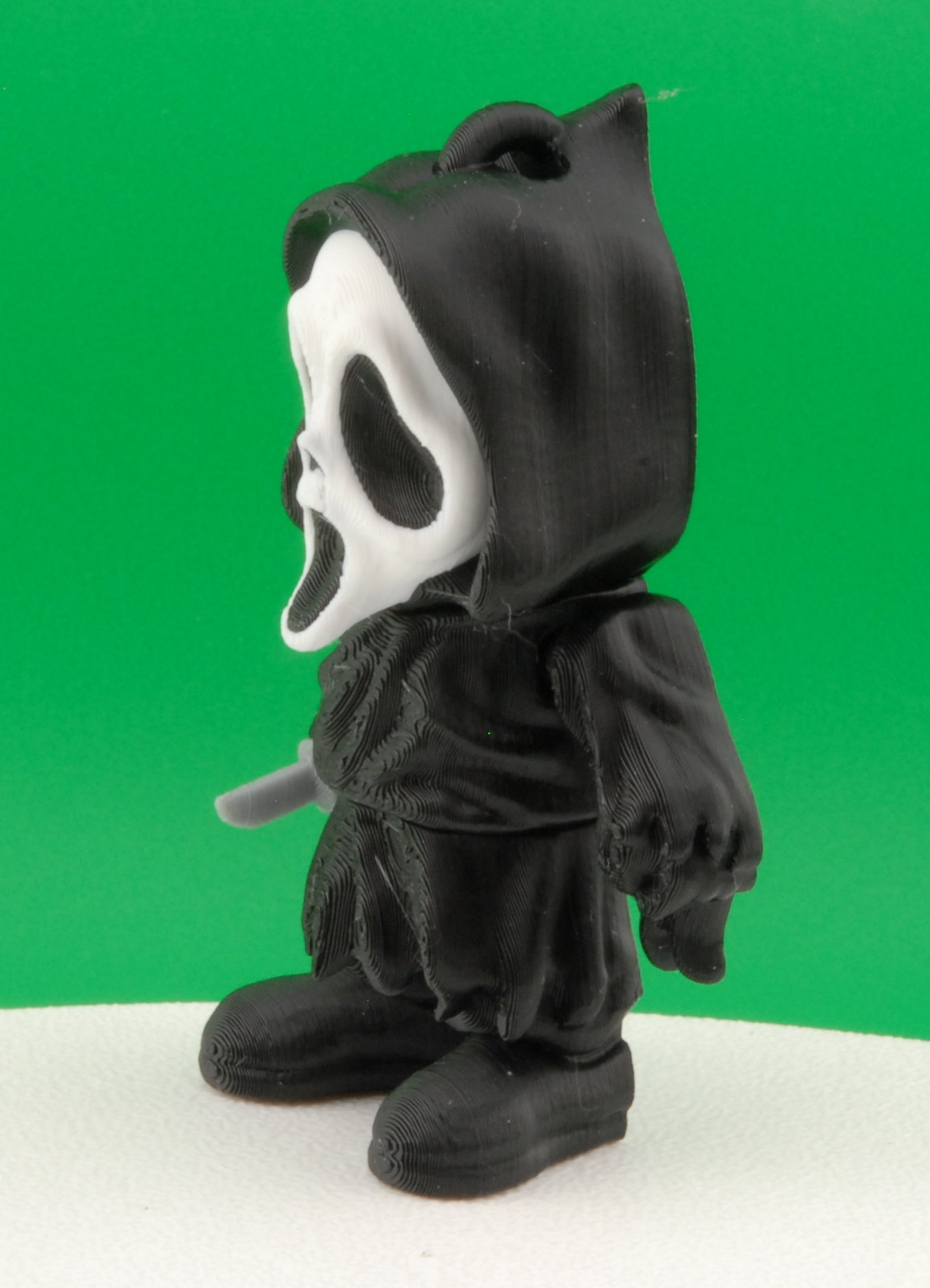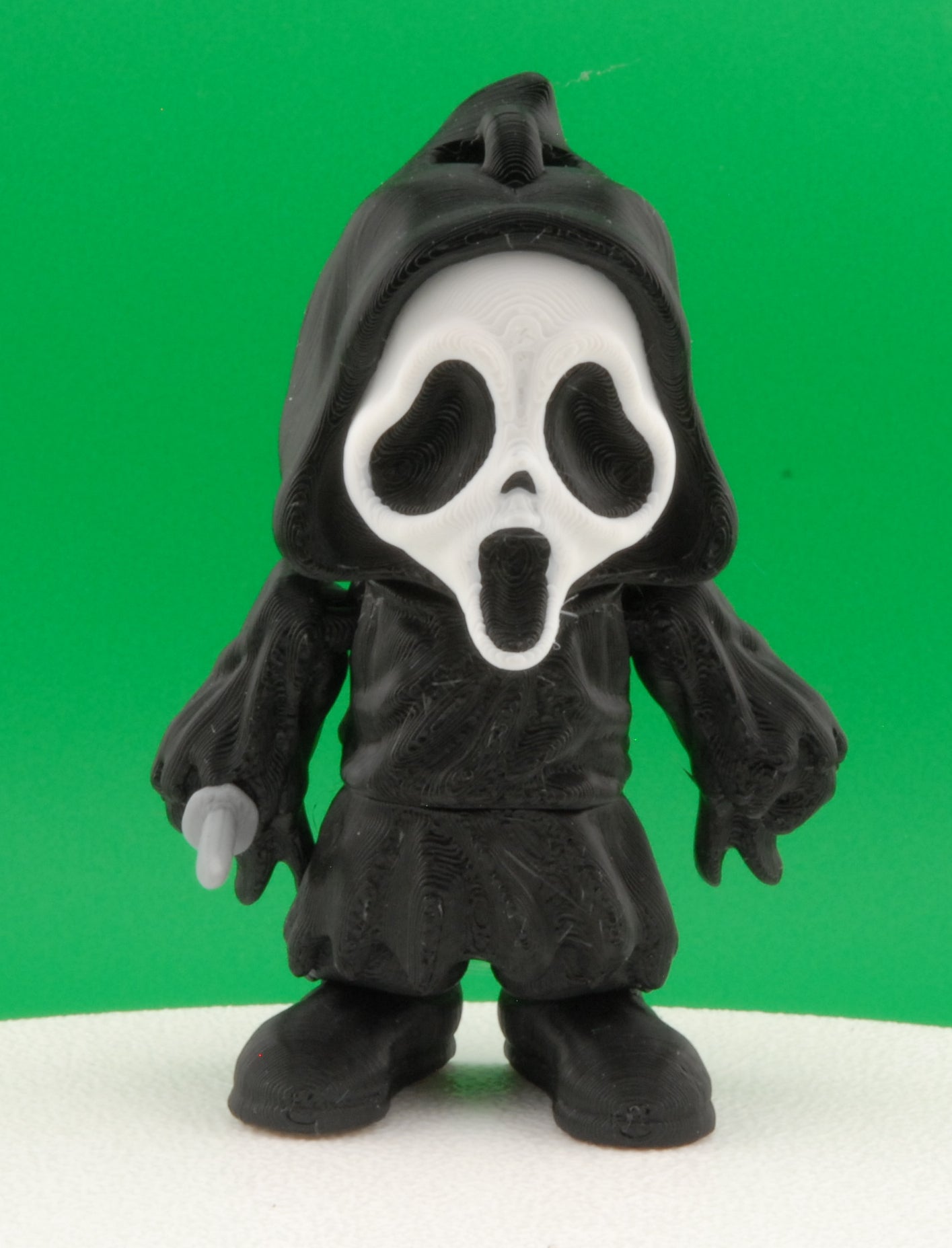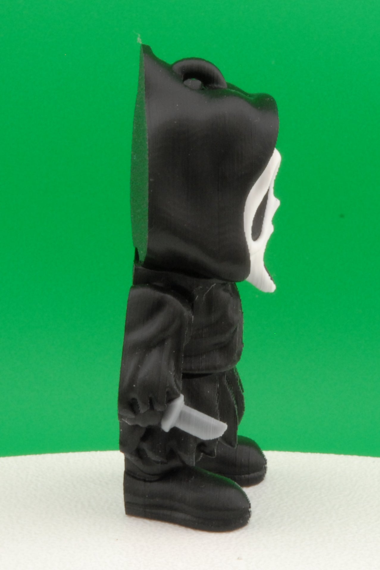 This articulated Ghostface figure is a 3D printed collectible perfect for horror fans. Ideal as a keychain or Halloween figurine, it captures the iconic slasher’s chilling essence. Add this unique piece to your collection or display it to showcase your love for the Scream franchise.