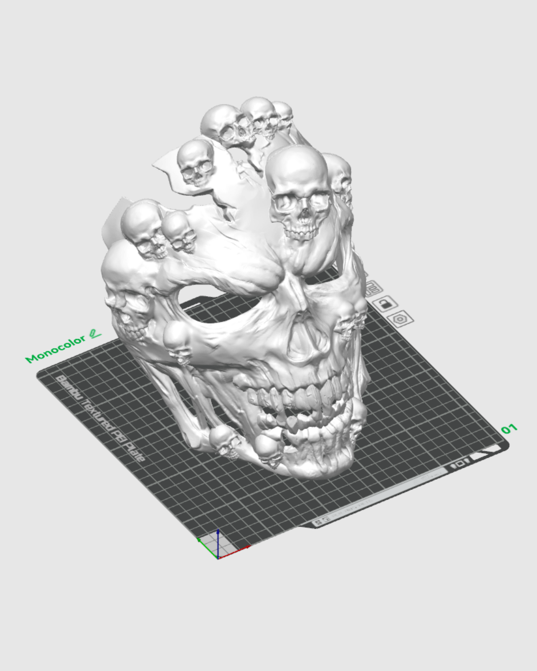Each mask is 3D printed using multiple filament colors — not painted. The natural bone hues are achieved entirely through filament layering for a realistic aged effect without any paint. Lightweight yet durable, this mask is both wearable and display-worthy, ideal for haunted décor or conventions.