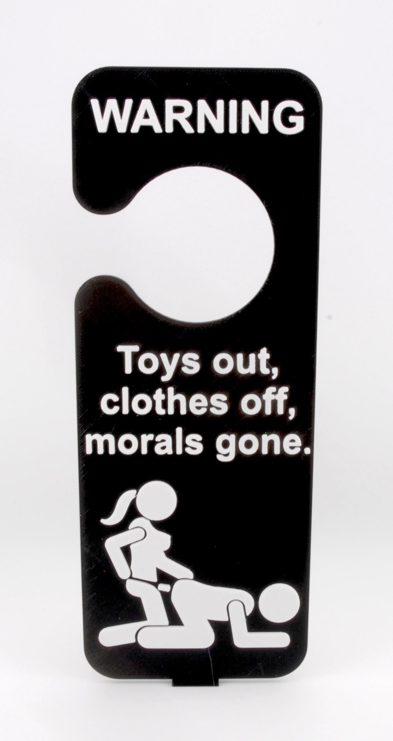 Made from durable 3D printed PLA plastic, it’s lightweight, sturdy, and fits most standard doorknobs. One of many hilarious adult door hangers available—collect them all to match the mood (or mischief) of the moment!