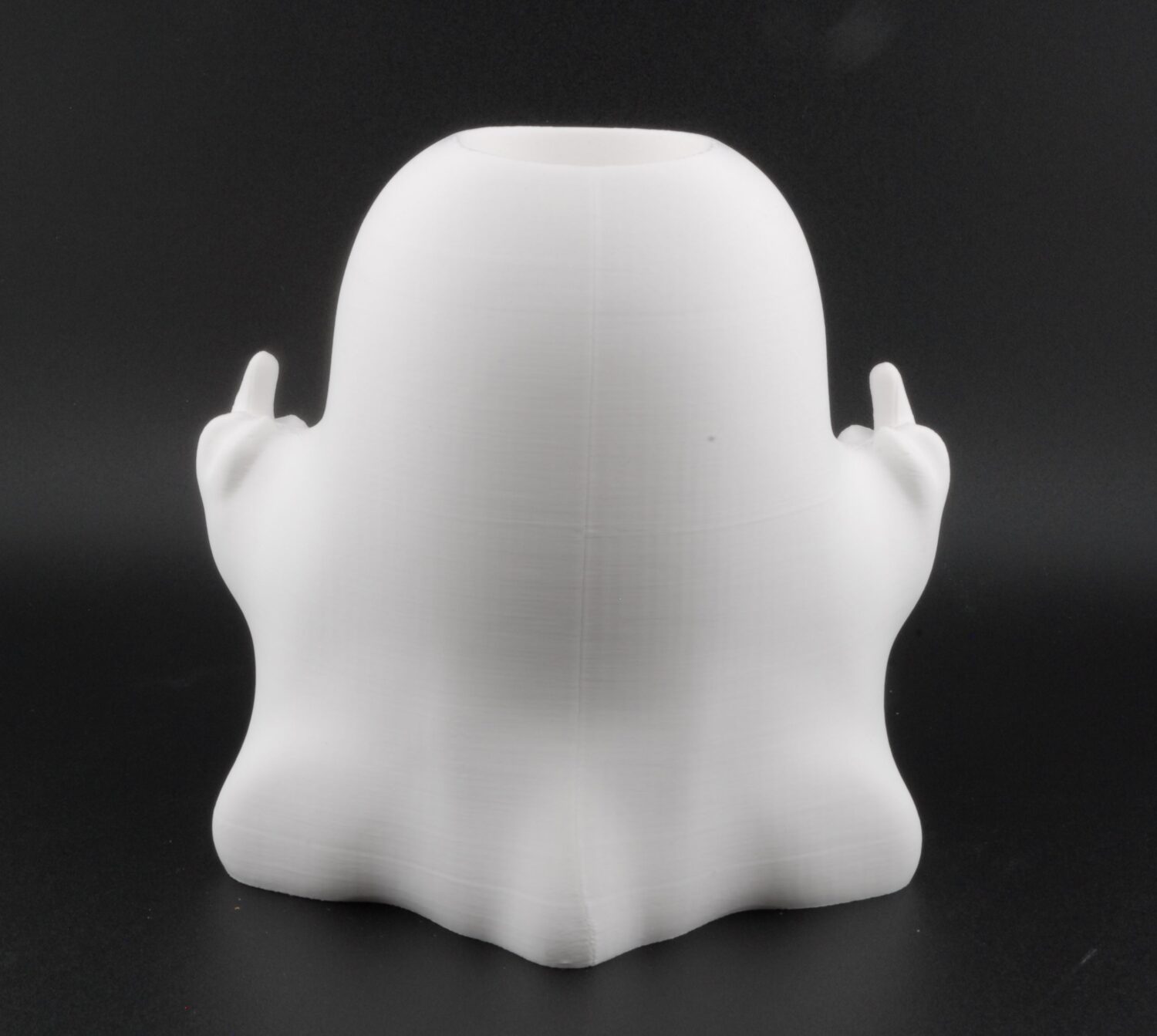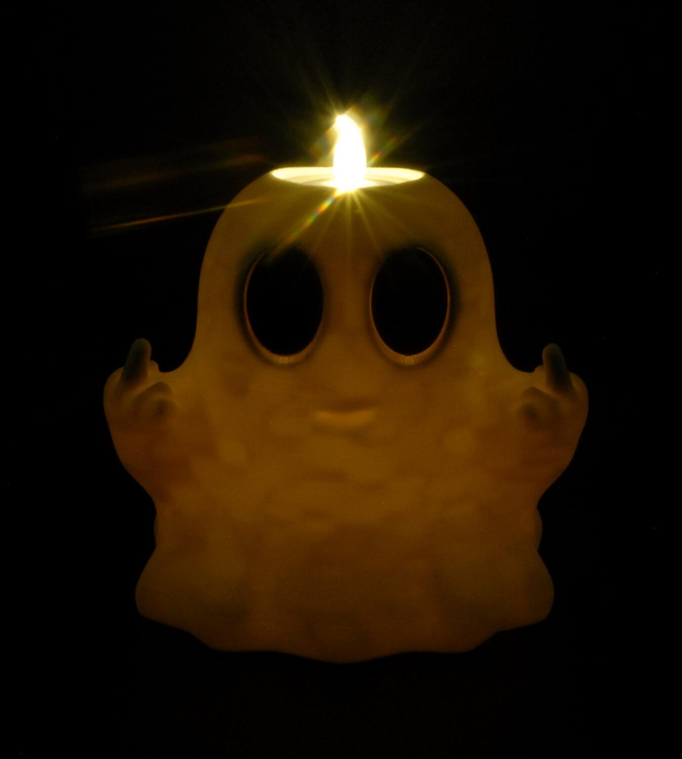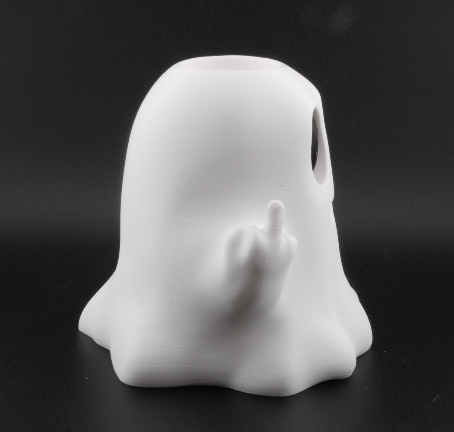 Take your Halloween humor up a notch with this 4.5-inch 3D printed ghost candle holder! This mischievous ghost isn’t just flipping the bird—it’s glowing with two LED candles included. One candle fits inside, making the ghost’s body glow eerily, while the second candle sits on top for a playful “ghostly flame” effect.