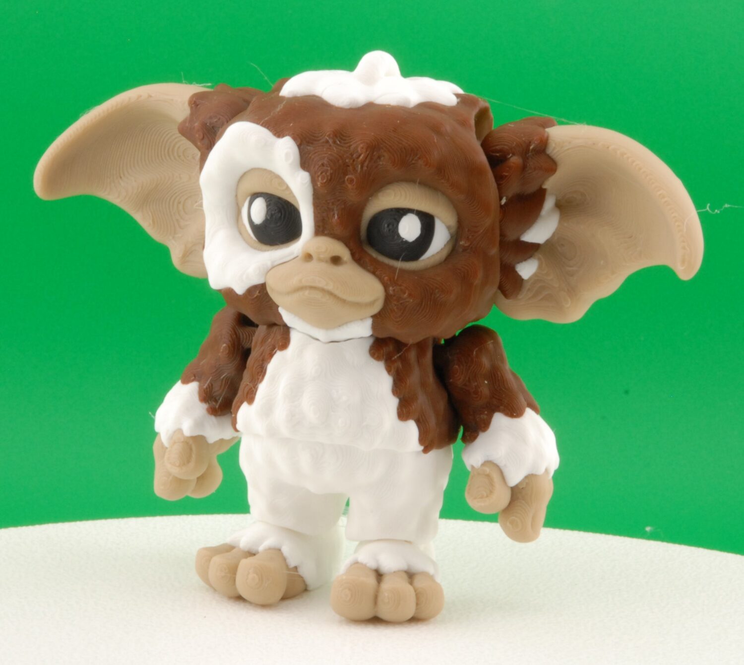 Discover this articulated Gizmo figure, a collectible inspired by the classic Gremlins movie. Crafted using 3D printing technology, this horror comedy toy doubles as a keychain, making it a unique addition to any collection or a fun nod to the beloved 80s film. Perfect for fans and collectors alike.