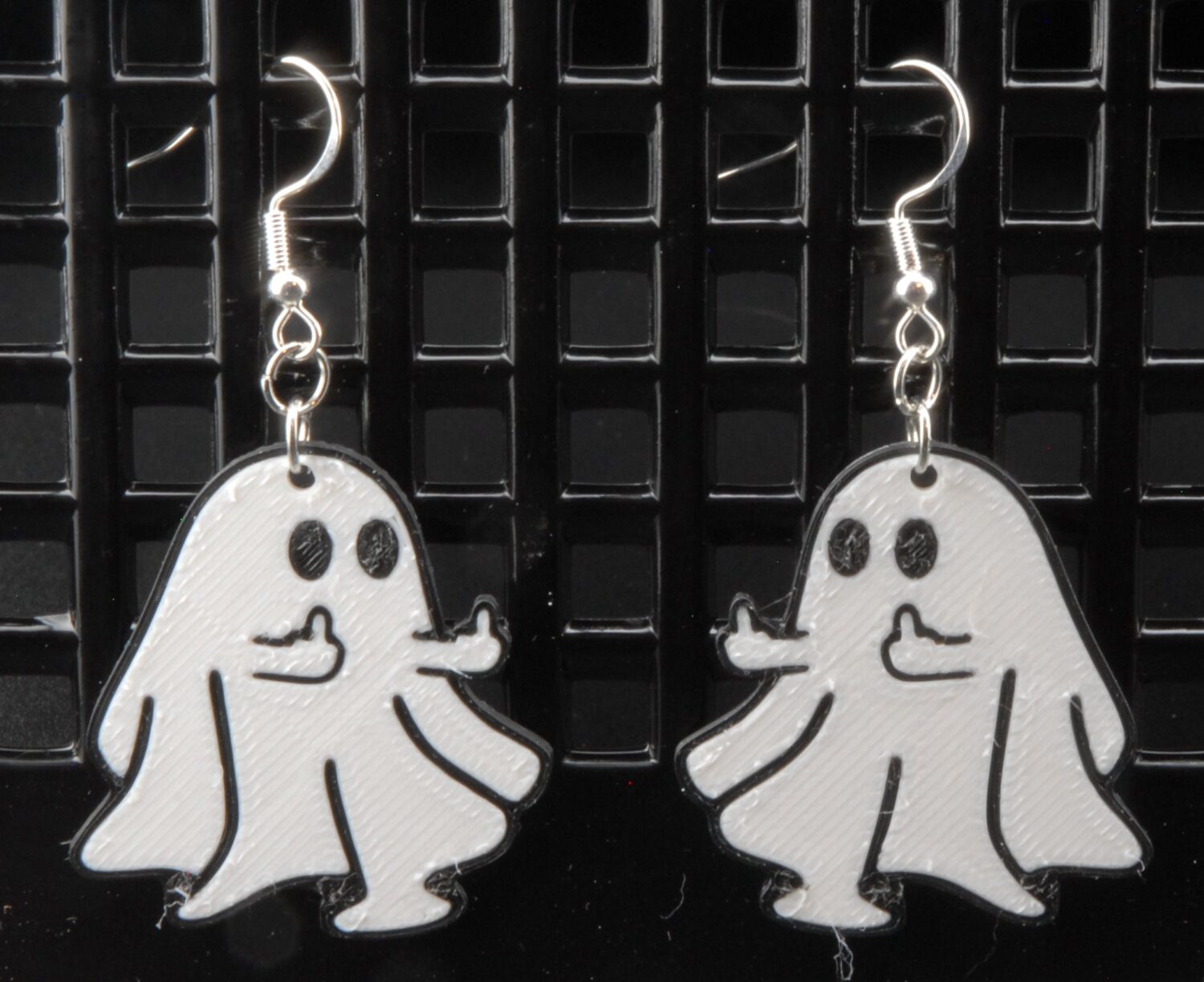 Lightweight, durable, and available with gold or silver hooks, these 3D printed earrings add a bit of rebellious humor to any outfit. Ideal for Halloween parties, goth fashion, or anyone who enjoys spooky style with a sense of humor.