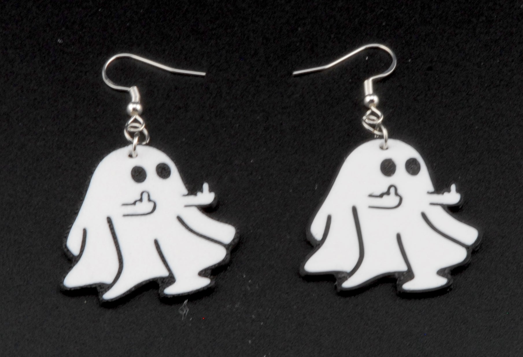 Show off your spooky side with attitude! These Ghost Attitude Earrings feature a cheeky ghost giving double middle fingers — the perfect mix of sass and spirit for anyone who loves playful Halloween accessories.