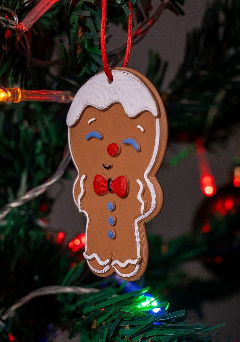 This cute gingerbread character features bright details including icing trim, a red bow tie, and a smiling face that captures the joy of the season. Each piece is 3D printed in durable PLA with multi-color precision for a vibrant finish that stands out in any light.