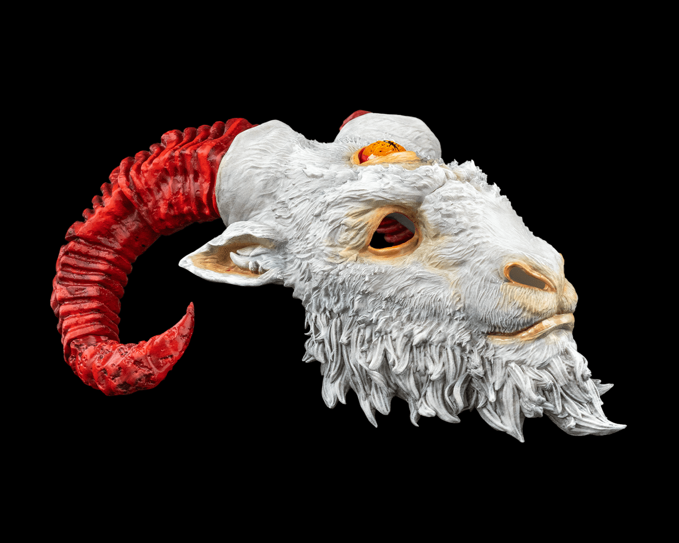 Wear it to complete a terrifying costume, hang it as a statement piece, or gift it to a horror enthusiast who loves the macabre. This mask will come with red horns and a solid white face. The mask is paintable and will not come painted. The product image shows a painted version. The mask you receive will have red horns and a plain white face ready for you to paint. The eye will also need to be painted, it will be red when you receive it. We can print the parts in a different color if you request it.
