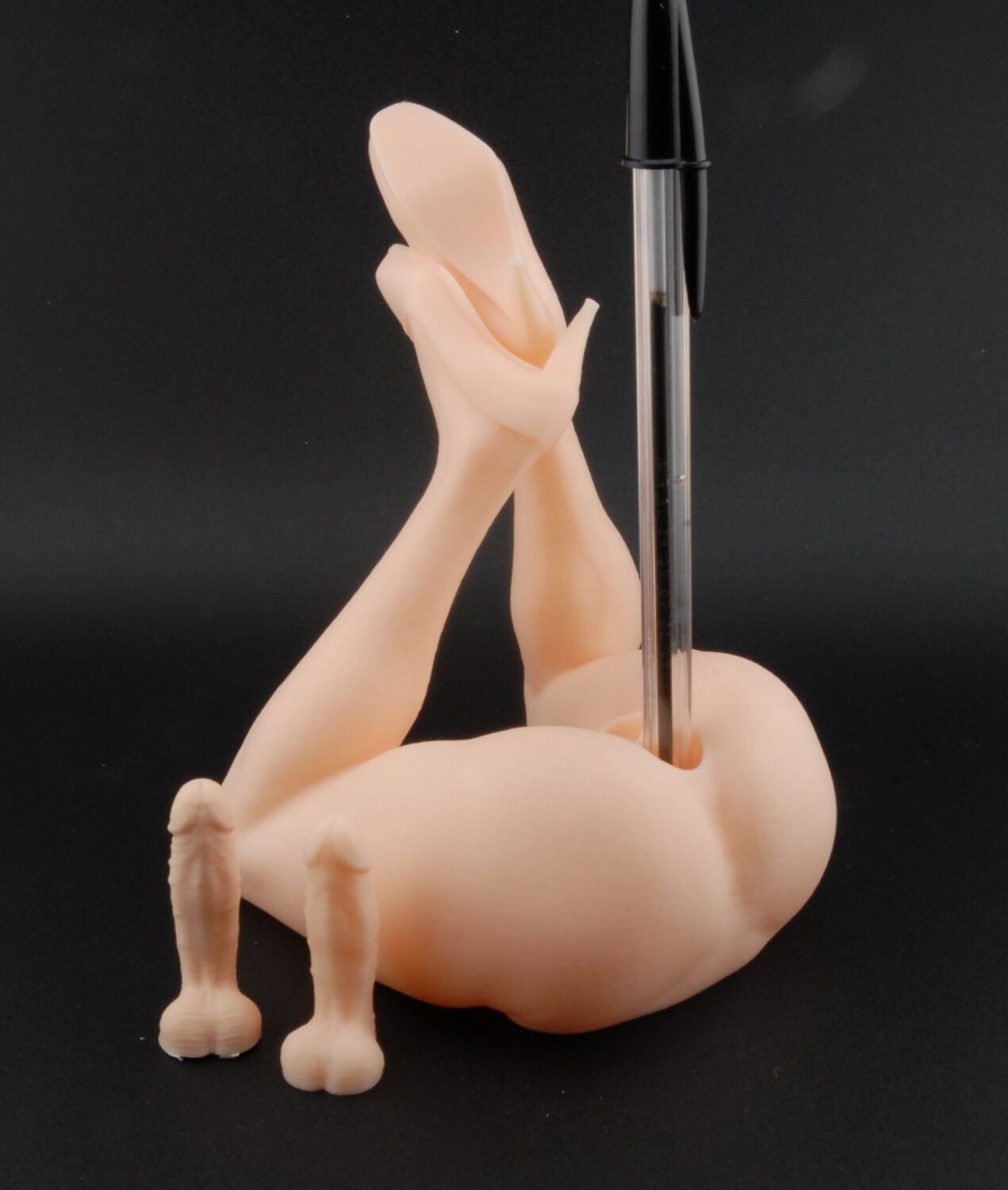 Made with high-quality 3D printed PLA, this piece stands around 3 inches tall and is available in black or white. It’s the perfect naughty collectible for those who like their office accessories a little… extra.