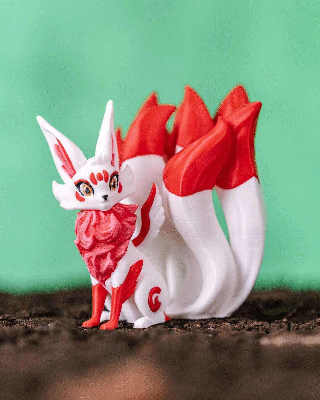 Graceful, cunning, and steeped in ancient magic, Kitsura the Spirit Fox watches over the boundary between worlds. With fiery red accents and a flowing ethereal mane, this 3D printed guardian channels the mystique of myth and the warmth of a protective flame.