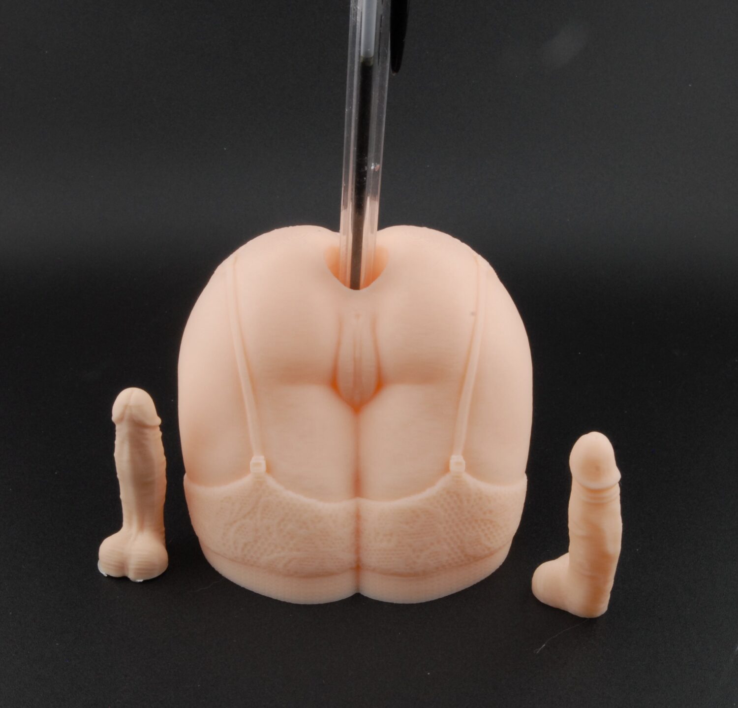 Add a playful touch to your workspace with this 3D printed pen holder designed as a naughty lingerie piece. Perfect as a gag gift or a unique piece of erotic desk décor, this stand is both functional and humorous, making it an ideal choice for adult humor fans.