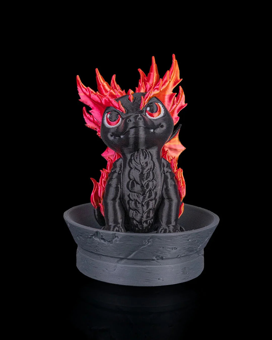 Flame-inspired baby dragon design with bold textures