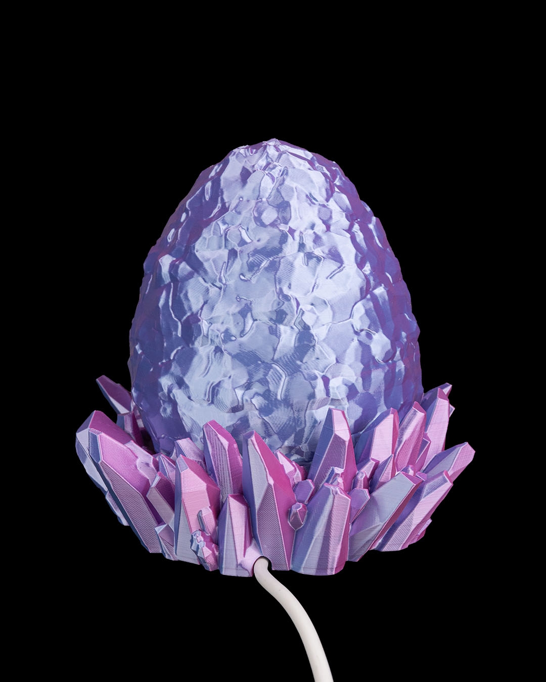 Each Prismheart Dragon Egg Lamp is 3D printed and assembled in-house by Fusion Layer 3D and is part of our growing dragon-themed table lamp collection, which includes multiple dragon egg designs with distinct styles and finishes.