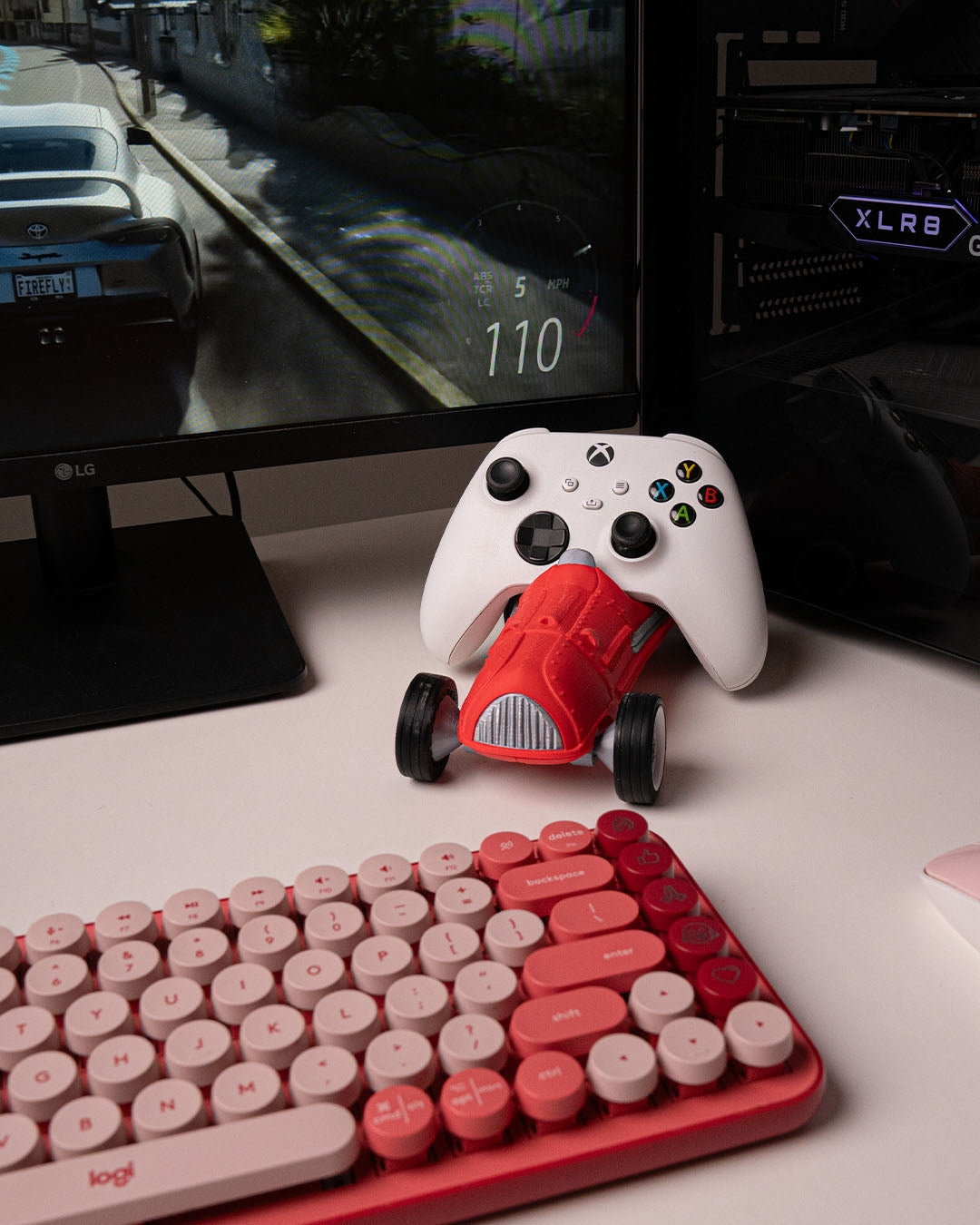 Rev up your gaming space with this retro-style Racing Car Controller Holder! Designed to securely cradle your PS5, Xbox, or most other game controllers, it combines functional storage with a touch of classic motorsport charm.