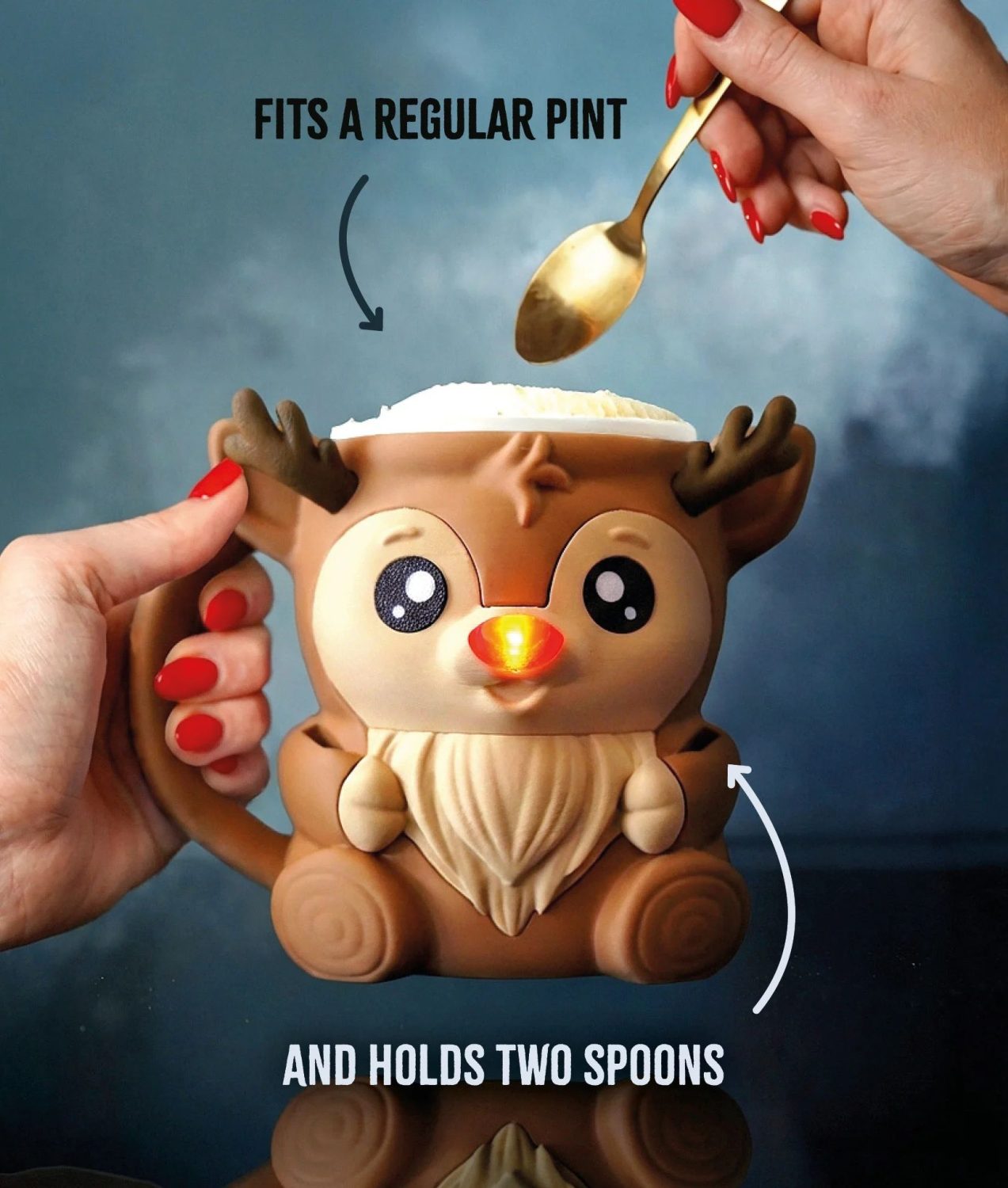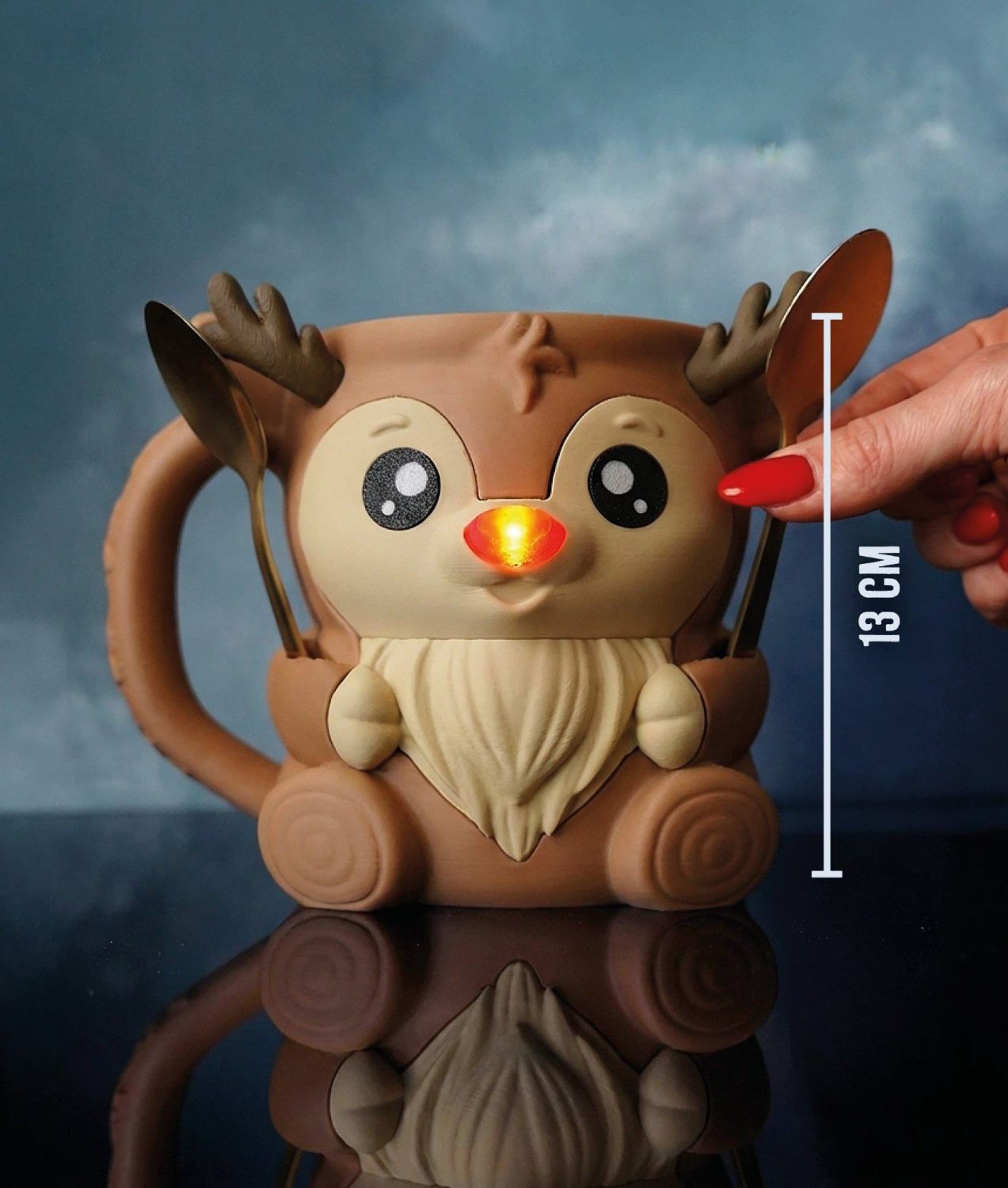 The light-up nose option adds a playful glow when triggered, making Rudy a standout piece for holiday desserts, gifts, or display. The lighting feature is built directly into the design and does not interfere with the holder’s main function.