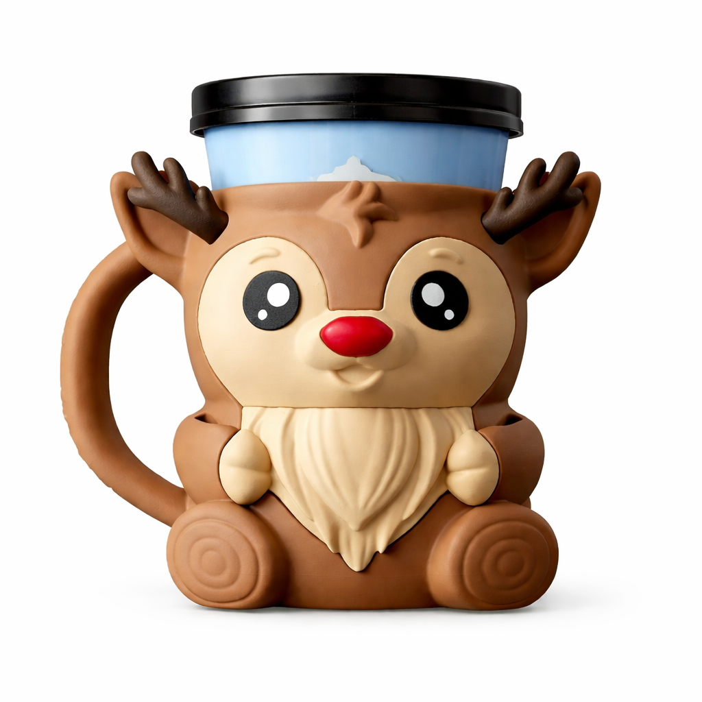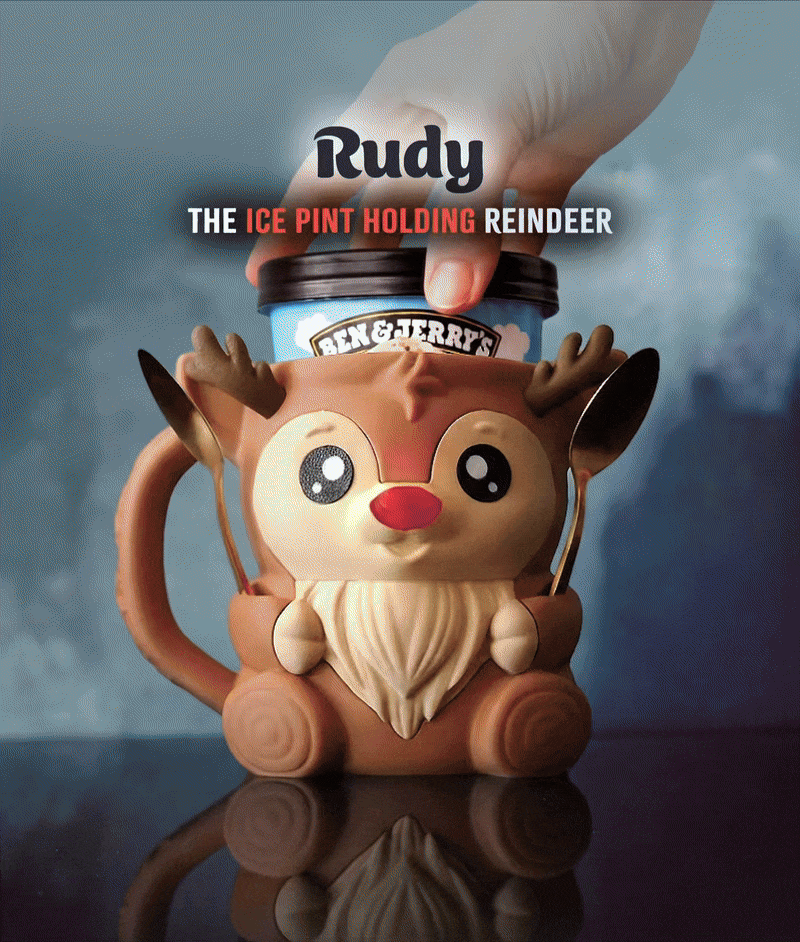 Meet Rudy, a playful reindeer ice cream pint holder designed to make dessert time even better. Rudy securely holds standard ice cream pint containers while giving you an easy, comfortable grip for frozen treats.