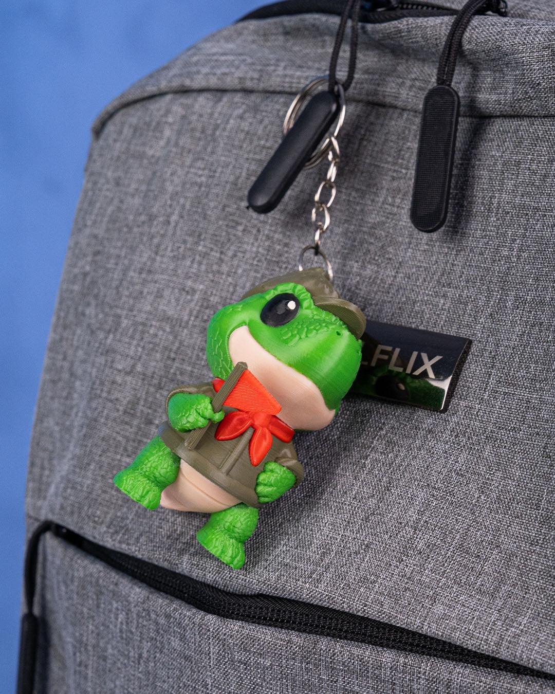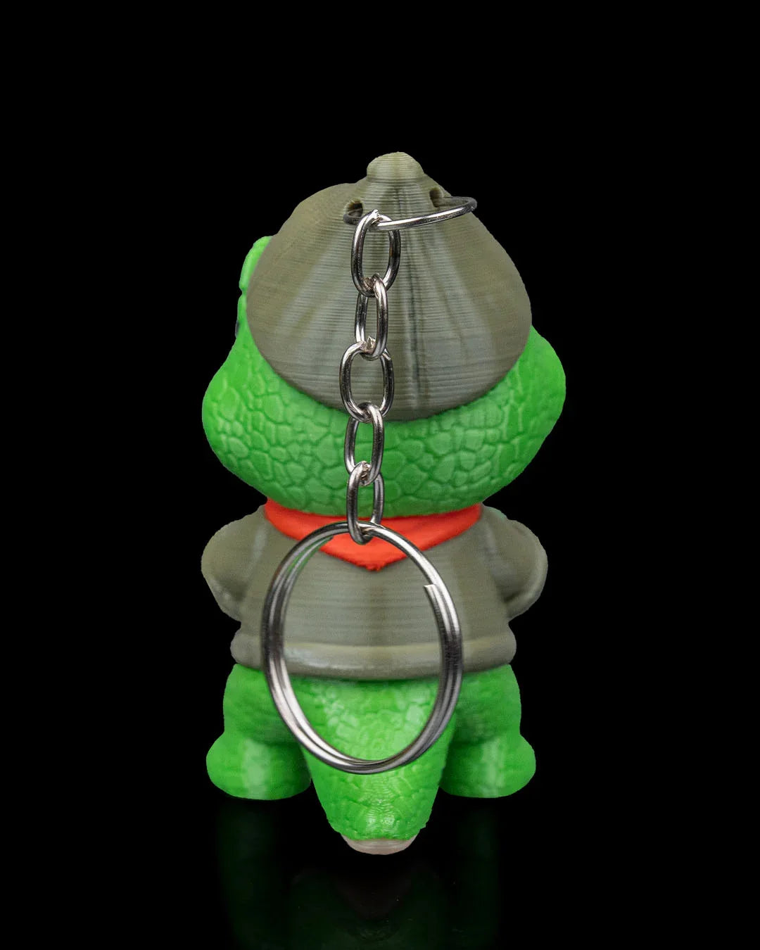 Embrace your adventurous side with our Scout-a-saurus Rex Keychain! This cheerful T-Rex, dressed in classic scout gear with a hat, scarf, and signaling flag, is always ready to explore the great outdoors—or keep a watchful eye on your keys. Expertly 3D printed with fine detail and bold colors, this accessory is both durable and full of charm.