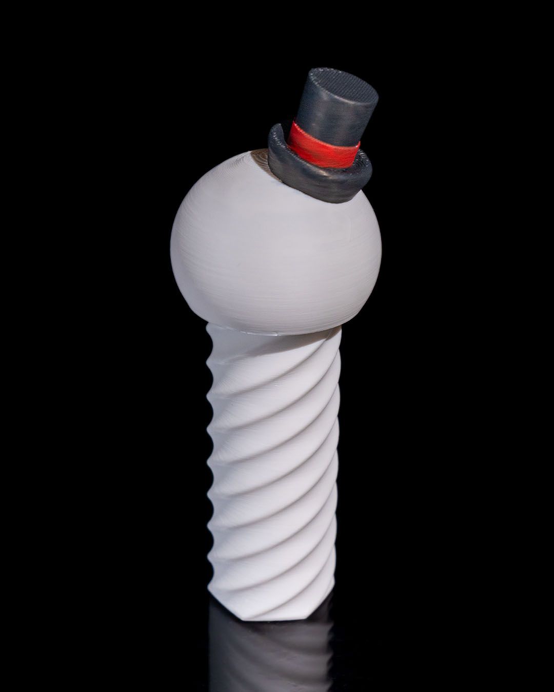 Snowman Cookie Stash – a 26 cm 3D-printed snowman with a removable twist-off head revealing a hidden cookie and candy storage chamber.