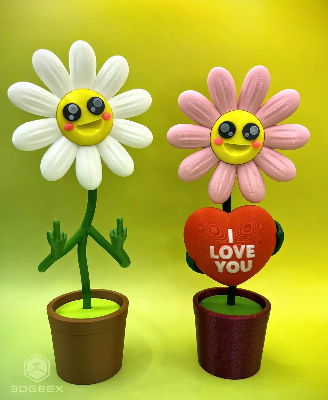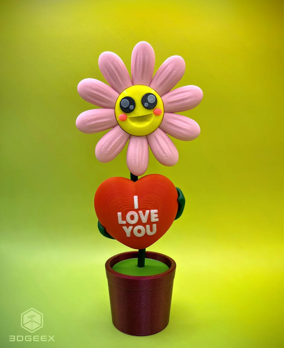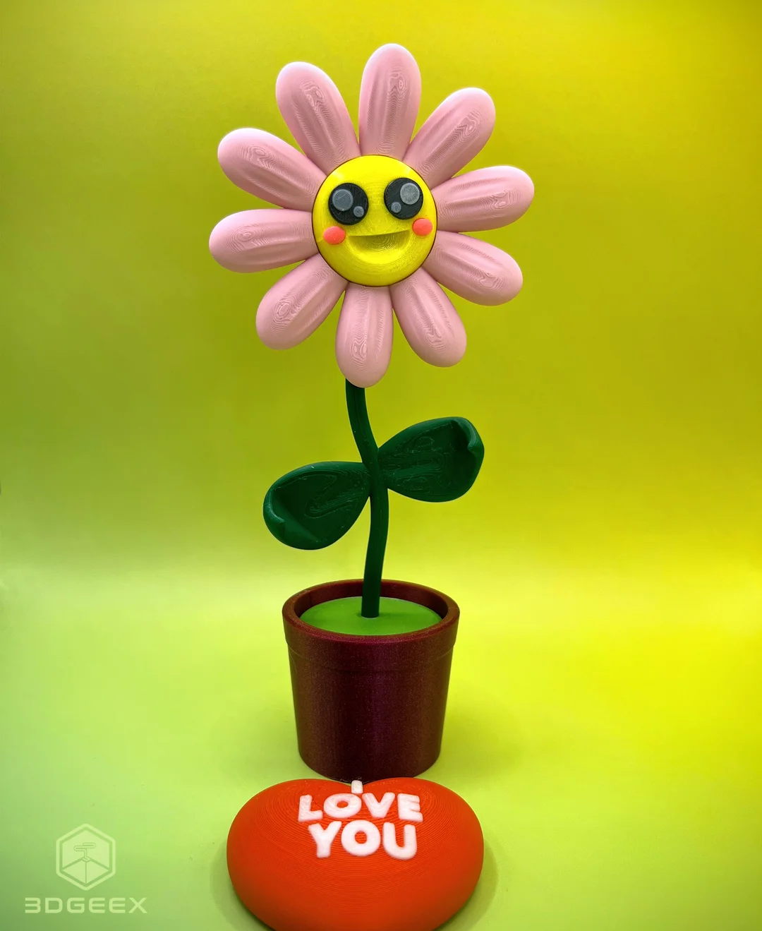 Add a burst of joy and movement to any space with this Spinning Flower Love Pot, a cheerful 3D printed decor piece designed to make people smile. Standing approximately 9 inches tall, this playful flower features a happy face bloom with manually spinning petals and flower head, making it both decorative and interactive.