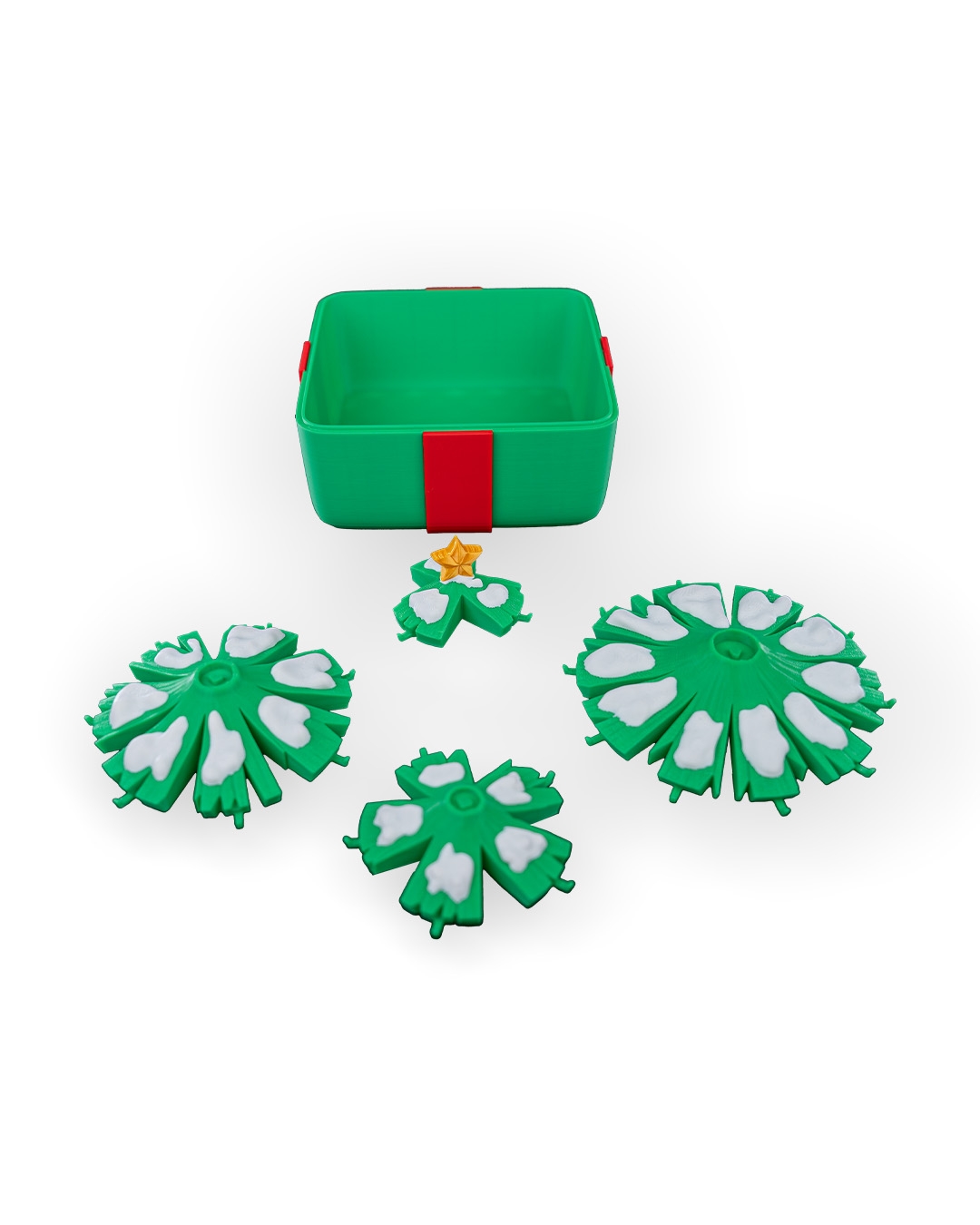 The Trim-It-Up Christmas Countdown Tree is a festive 16cm holiday display that brings a charming new twist to traditional advent calendars. This compact tabletop countdown includes a fully 3D printed tree with layered snowy branches, 25 numbered hanging ornaments, a bright top star, and three matching gift-box storage containers to keep everything organized throughout the season.