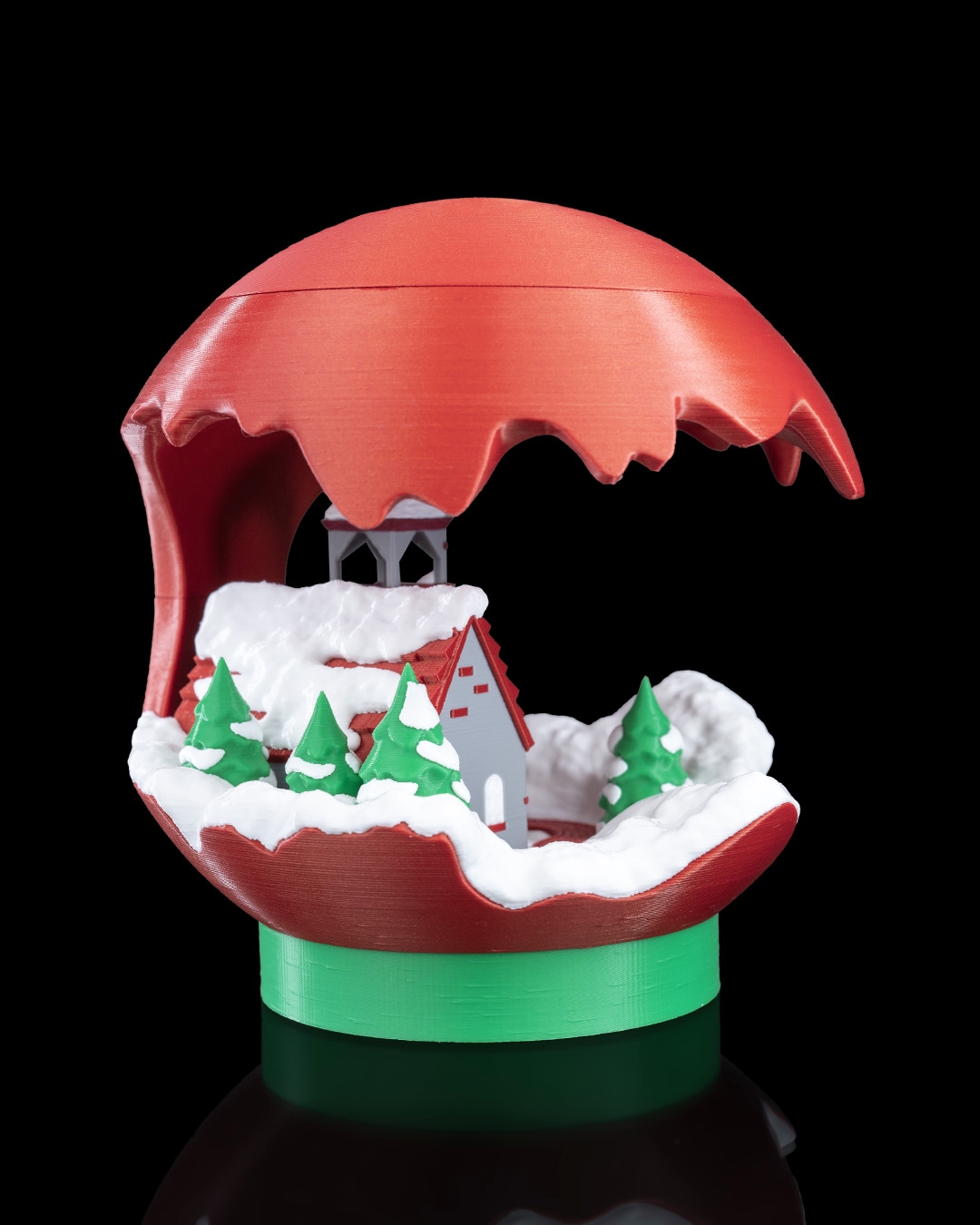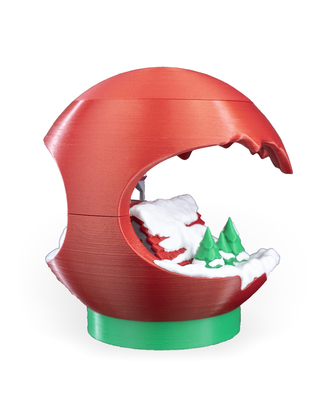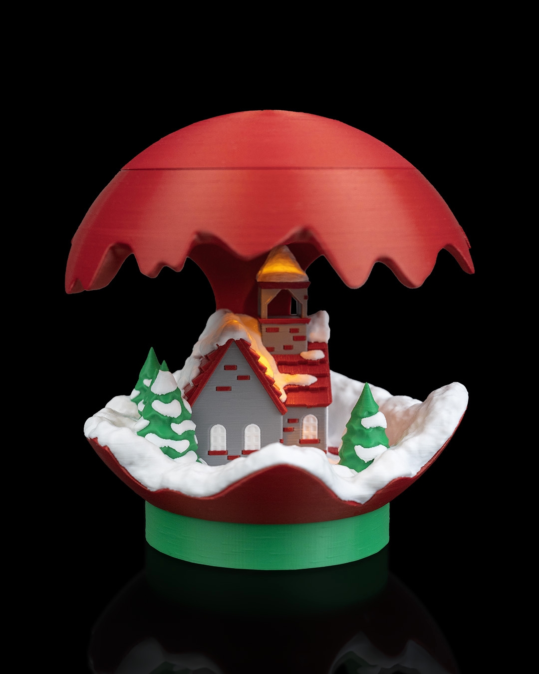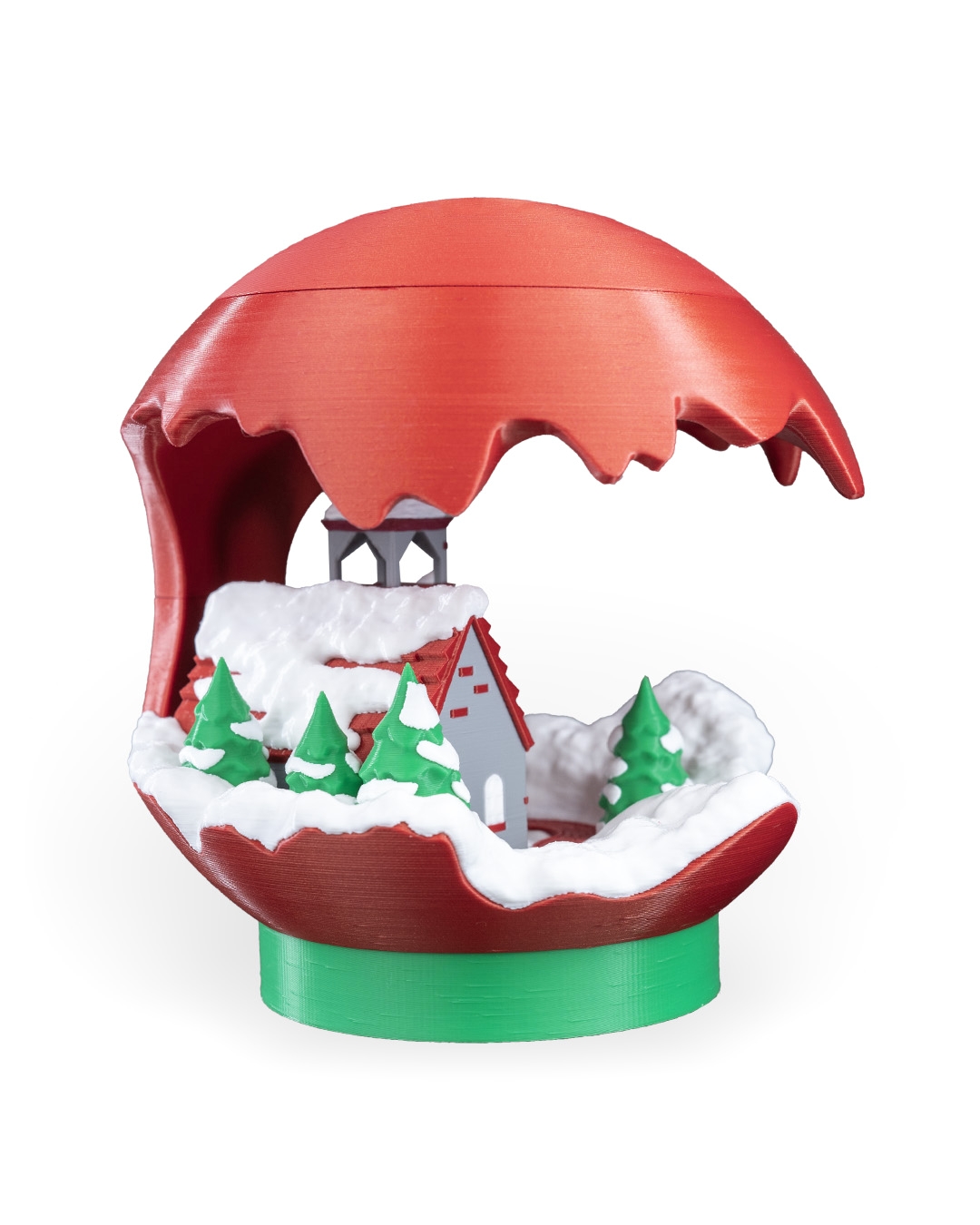 Bring the magic of the holidays into your home with this beautifully crafted Christmas village lamp. The Winter’s Glow Christmas Village Lamp features a detailed snowy village tucked inside a cracked-open ornament shell, illuminated from within by a warm LED tea light. Each piece is 3D printed in vibrant PLA and assembled with care, giving you a festive display that feels both nostalgic and modern.