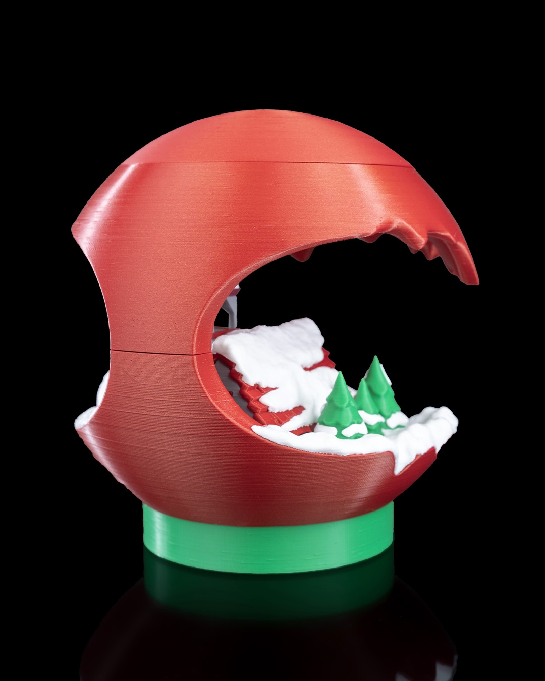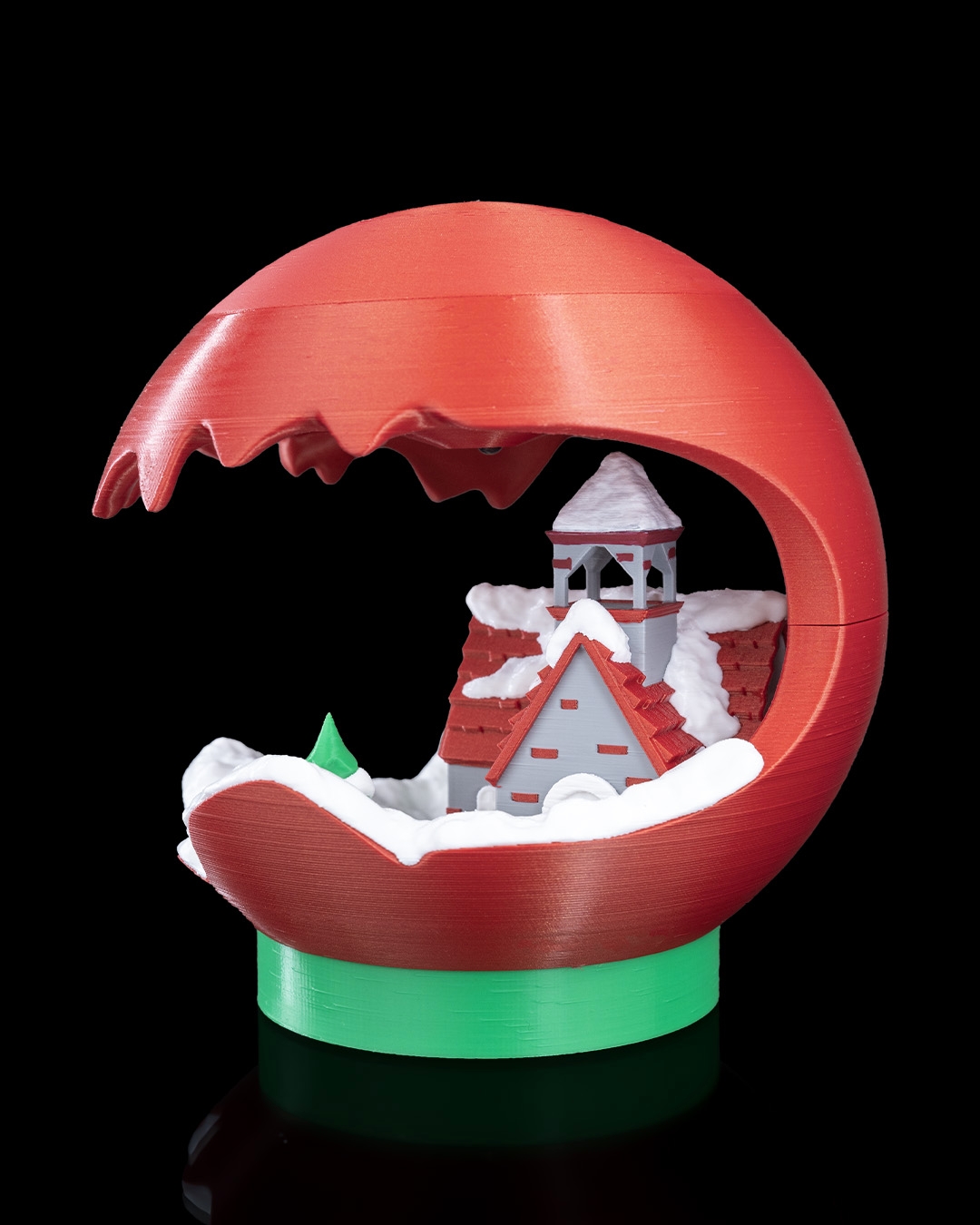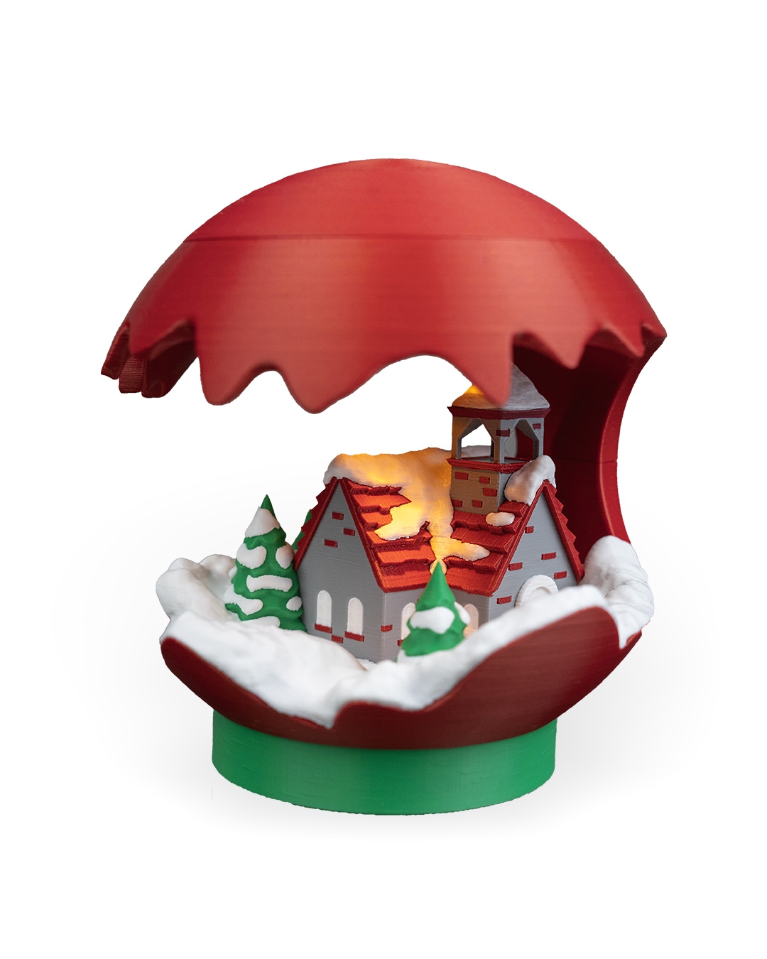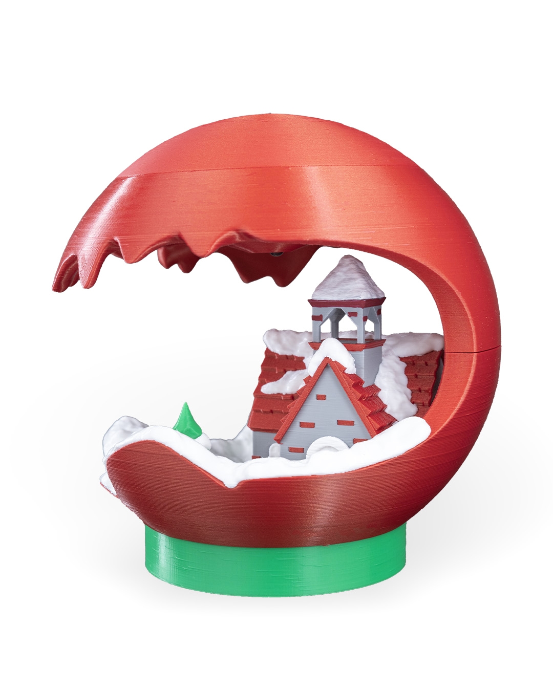 Bring the magic of the holidays into your home with this beautifully crafted Christmas village lamp. The Winter’s Glow Christmas Village Lamp features a detailed snowy village tucked inside a cracked-open ornament shell, illuminated from within by a warm LED tea light. Each piece is 3D printed in vibrant PLA and assembled with care, giving you a festive display that feels both nostalgic and modern.