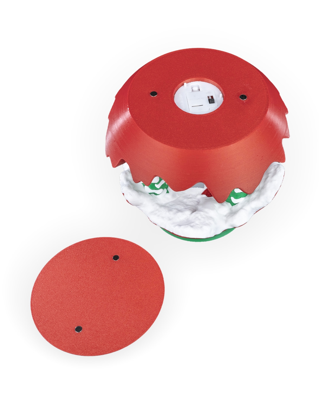 A 14.5cm 3D-printed Christmas village lamp featuring a snowy village illuminated by a warm LED tea light. Magnetic top shell for easy access. Perfect holiday décor piece or gift. Colors may vary. Custom colors available upon request.