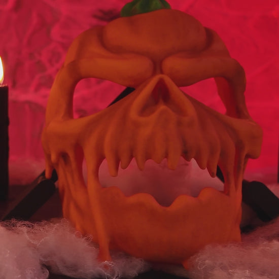 Carved in Fear Pumpkin Skull Mask – Horror Halloween Cosplay Mask | 3D Printed Jack-o’-Lantern Skull Hybrid Costume Prop