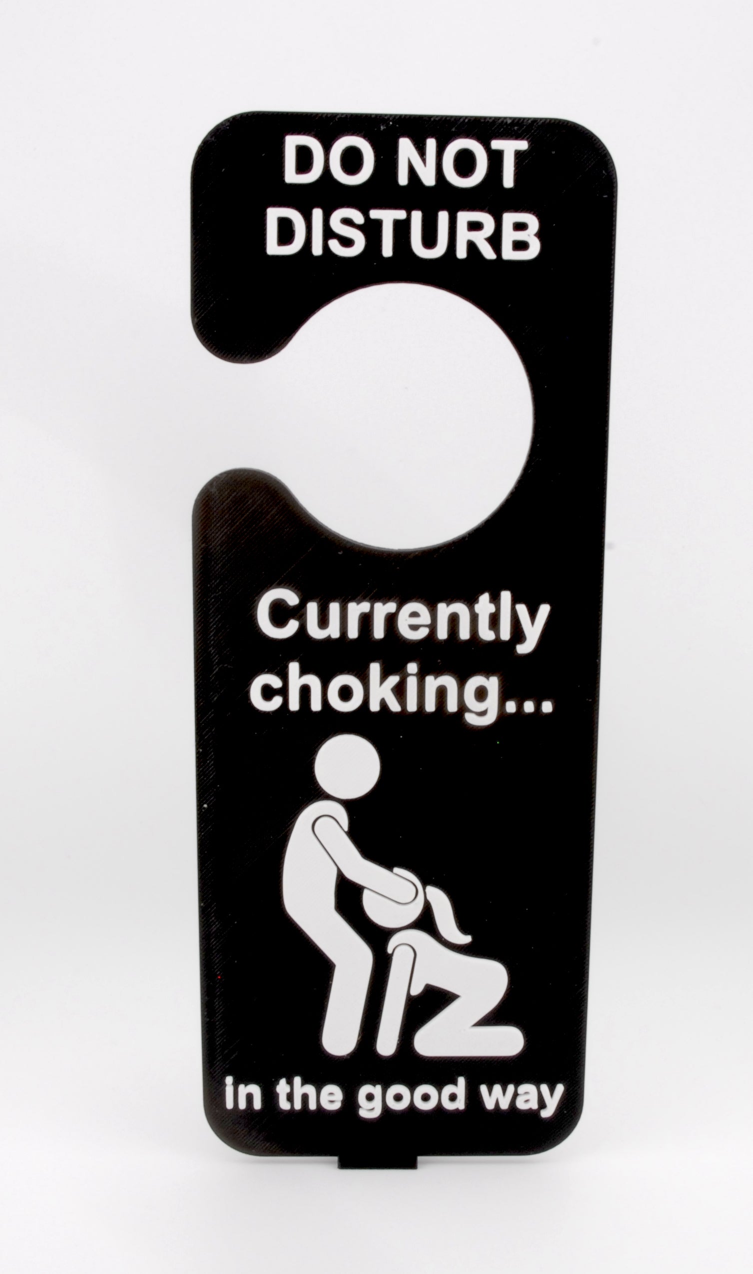 Made from durable, lightweight 3D printed plastic, this sign is designed to fit most standard door handles. It’s part of our larger collection of funny and risqué door hangers — so if this one makes you laugh, be sure to check out the rest of the designs we offer!