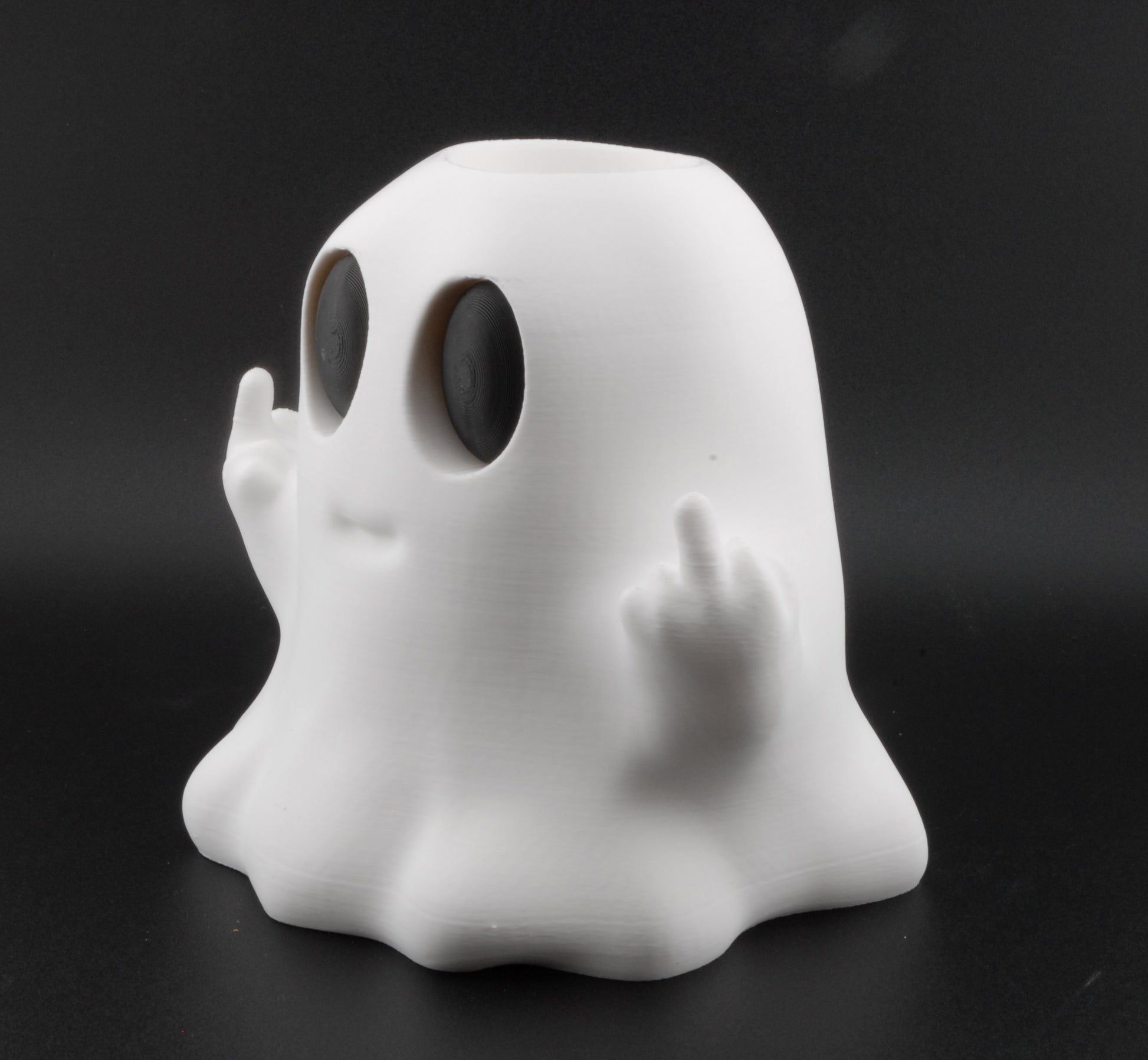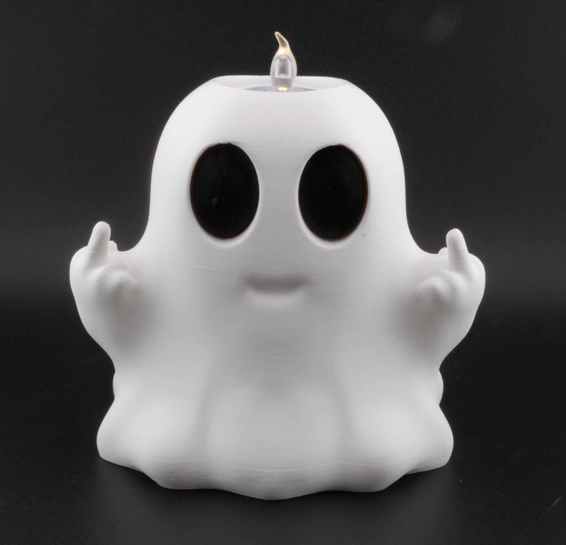 Take your Halloween humor up a notch with this 4.5-inch 3D printed ghost candle holder! This mischievous ghost isn’t just flipping the bird—it’s glowing with two LED candles included. One candle fits inside, making the ghost’s body glow eerily, while the second candle sits on top for a playful “ghostly flame” effect.